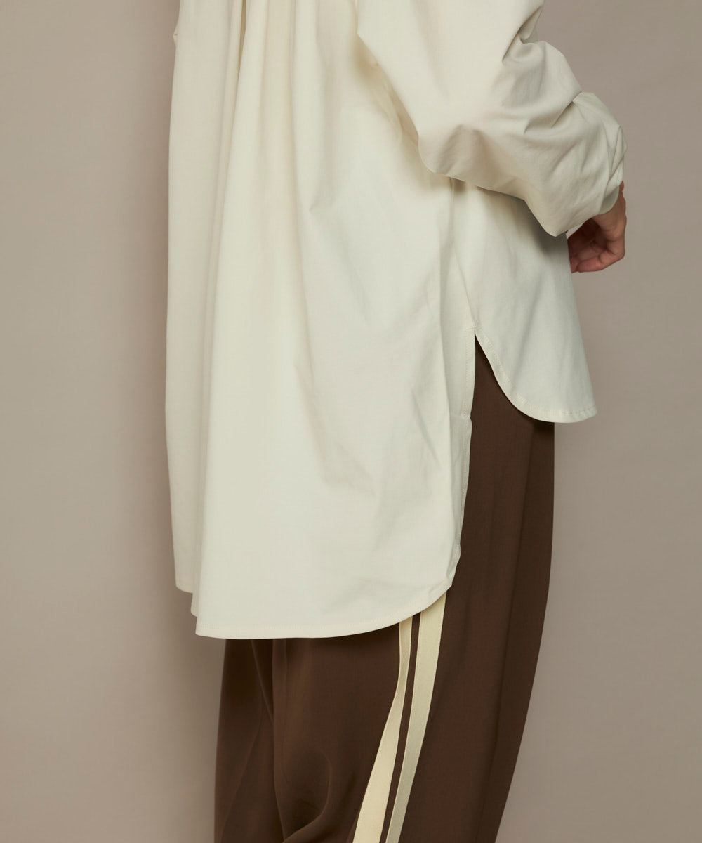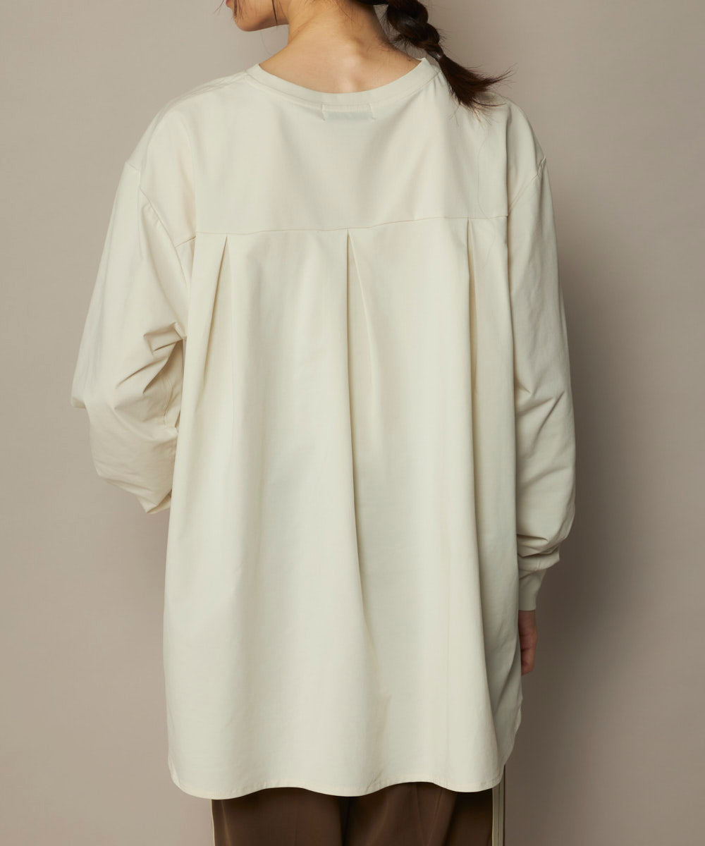 ゆったりとしたシルエットに、バックタックをプラスした立体的なデザインが後ろ姿まで印象的◎