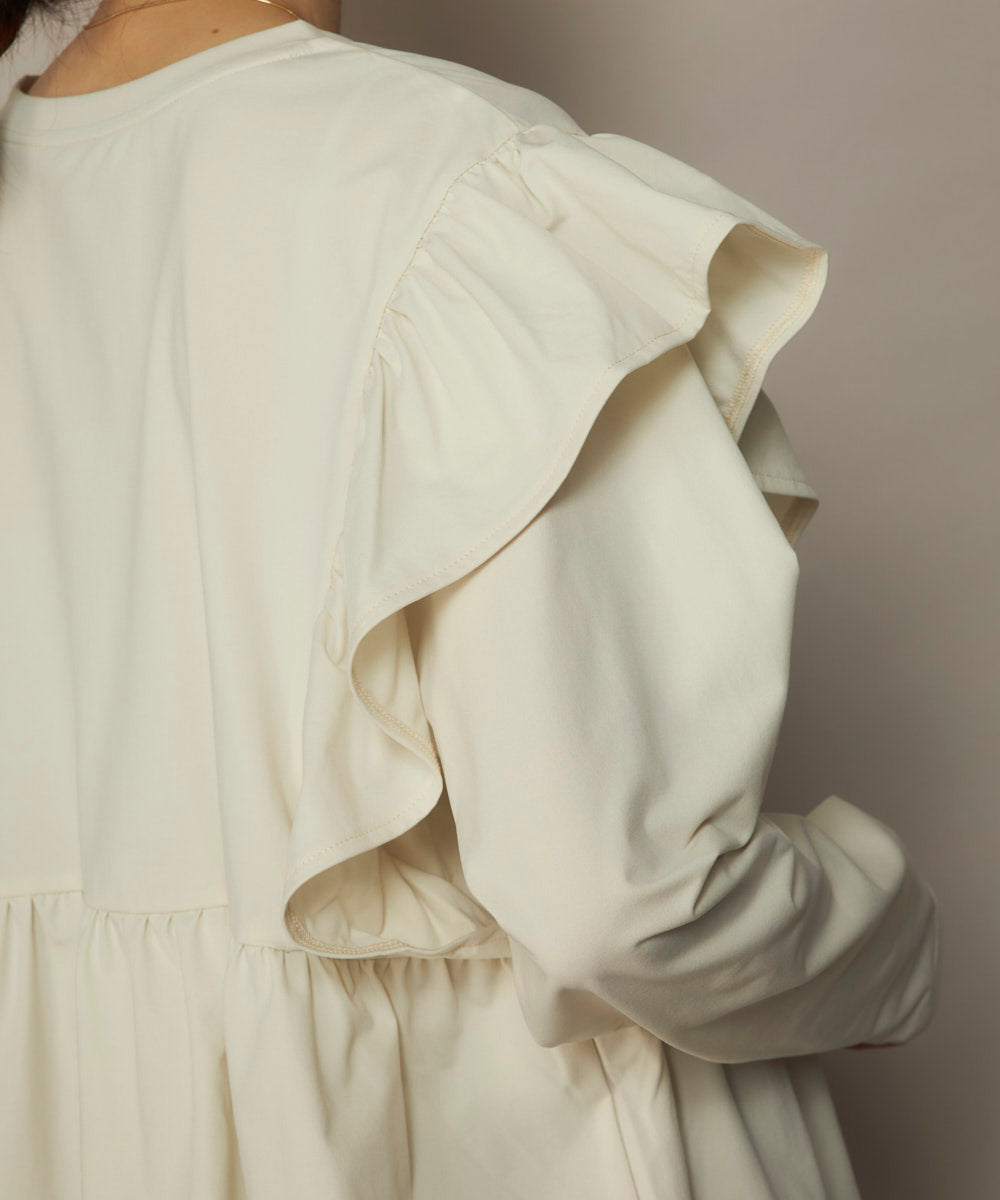 軽やかさと女性らしさを兼ね備えた、7分袖のフレアロンT。