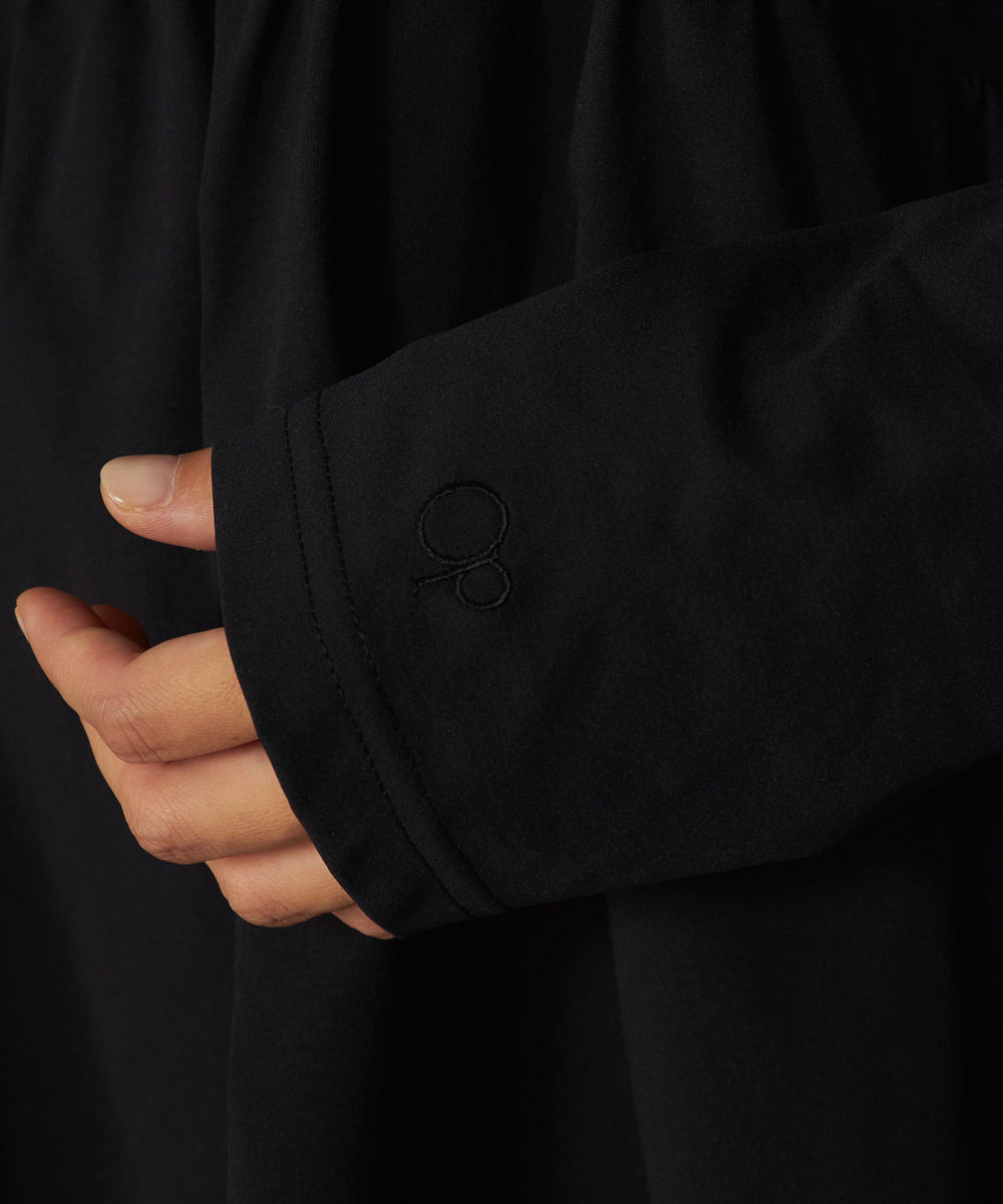 ふんわりと広がるフレアシルエットが華やかさを演出し、シンプルながらも着映えする一着です。