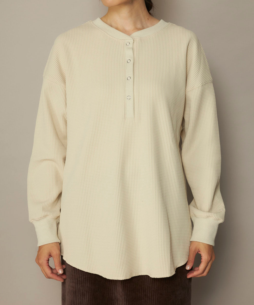 秋の始まりにぴったりな、軽やかワッフルロンT。