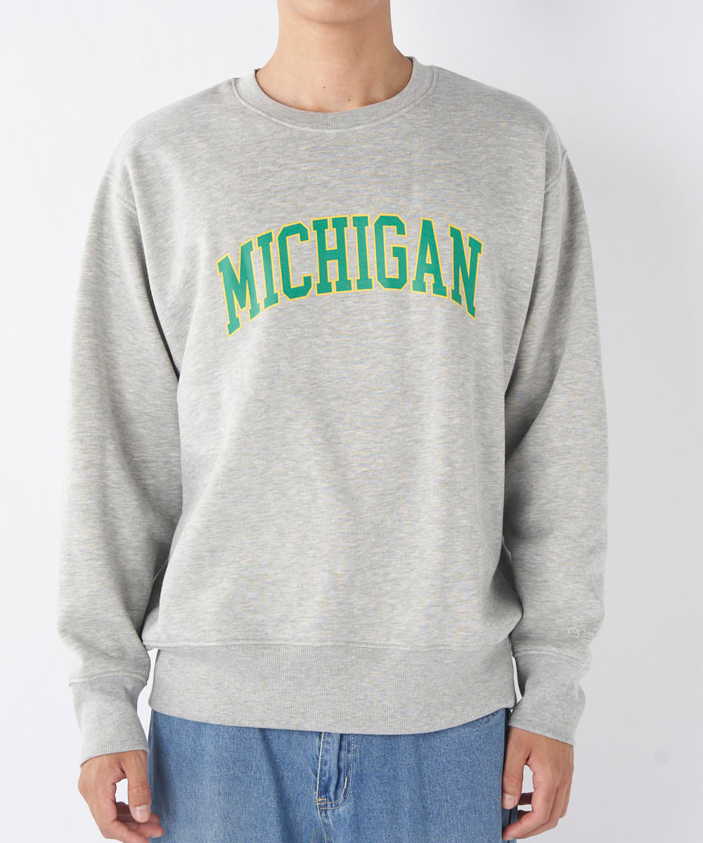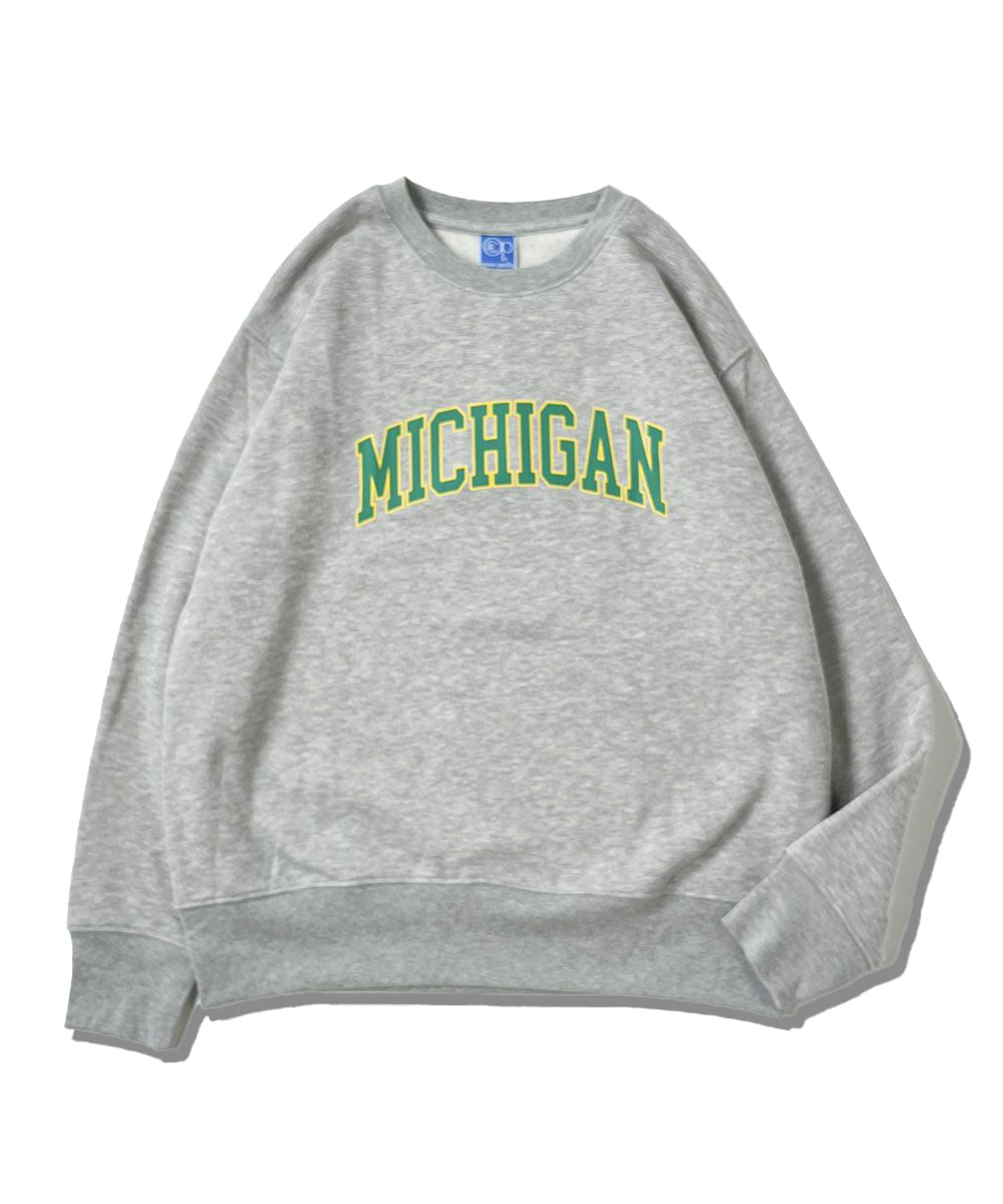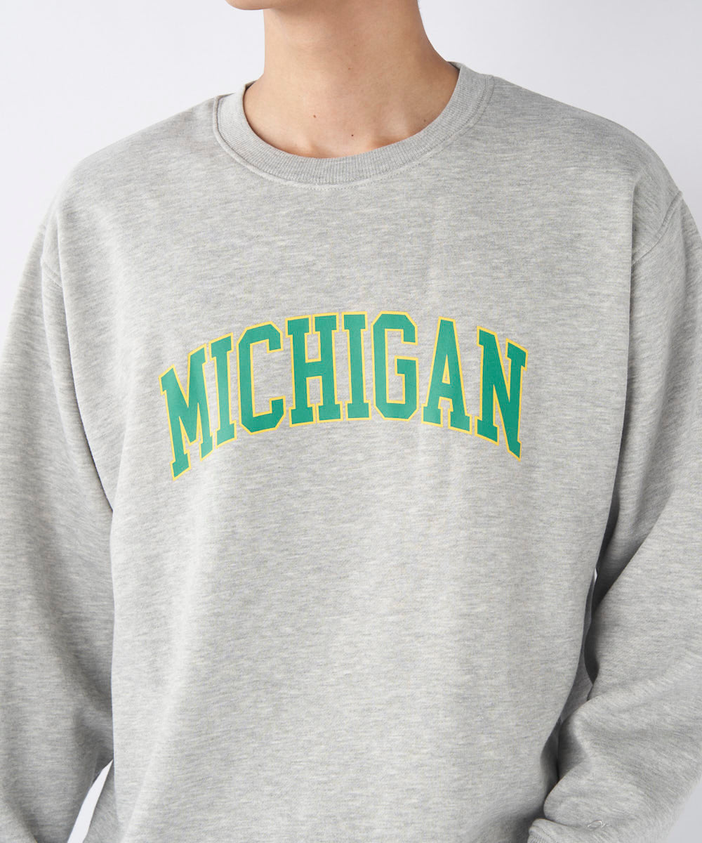 フロントに「MICHIGAN」ロゴがプリントされたクルースウェットが登場。