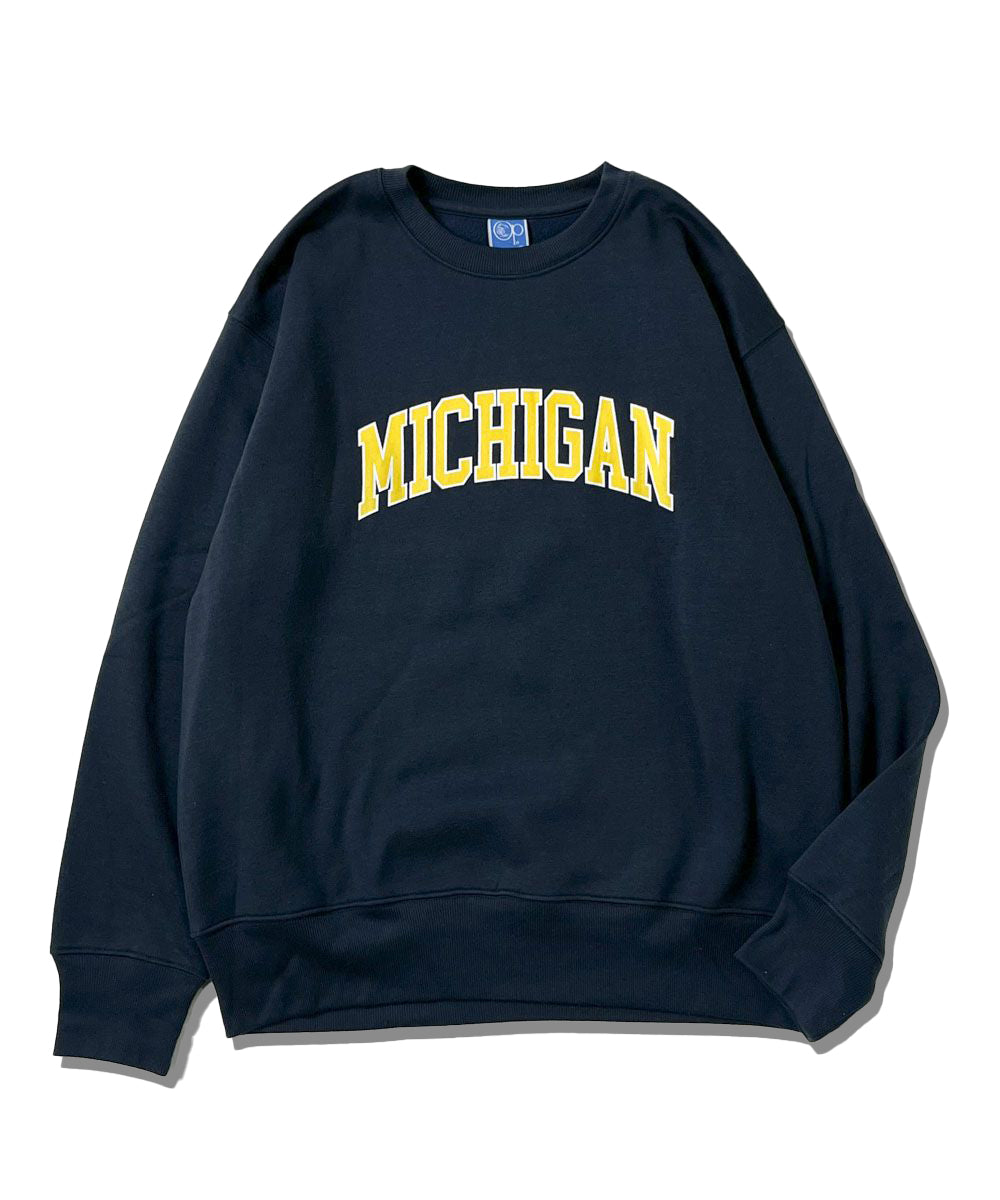 フロントに「MICHIGAN」ロゴがプリントされたクルースウェットが登場。