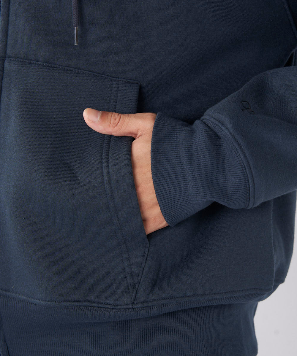 秋口には羽織りとして、寒くなればインナーでも使いまわししやすいジップパーカー。