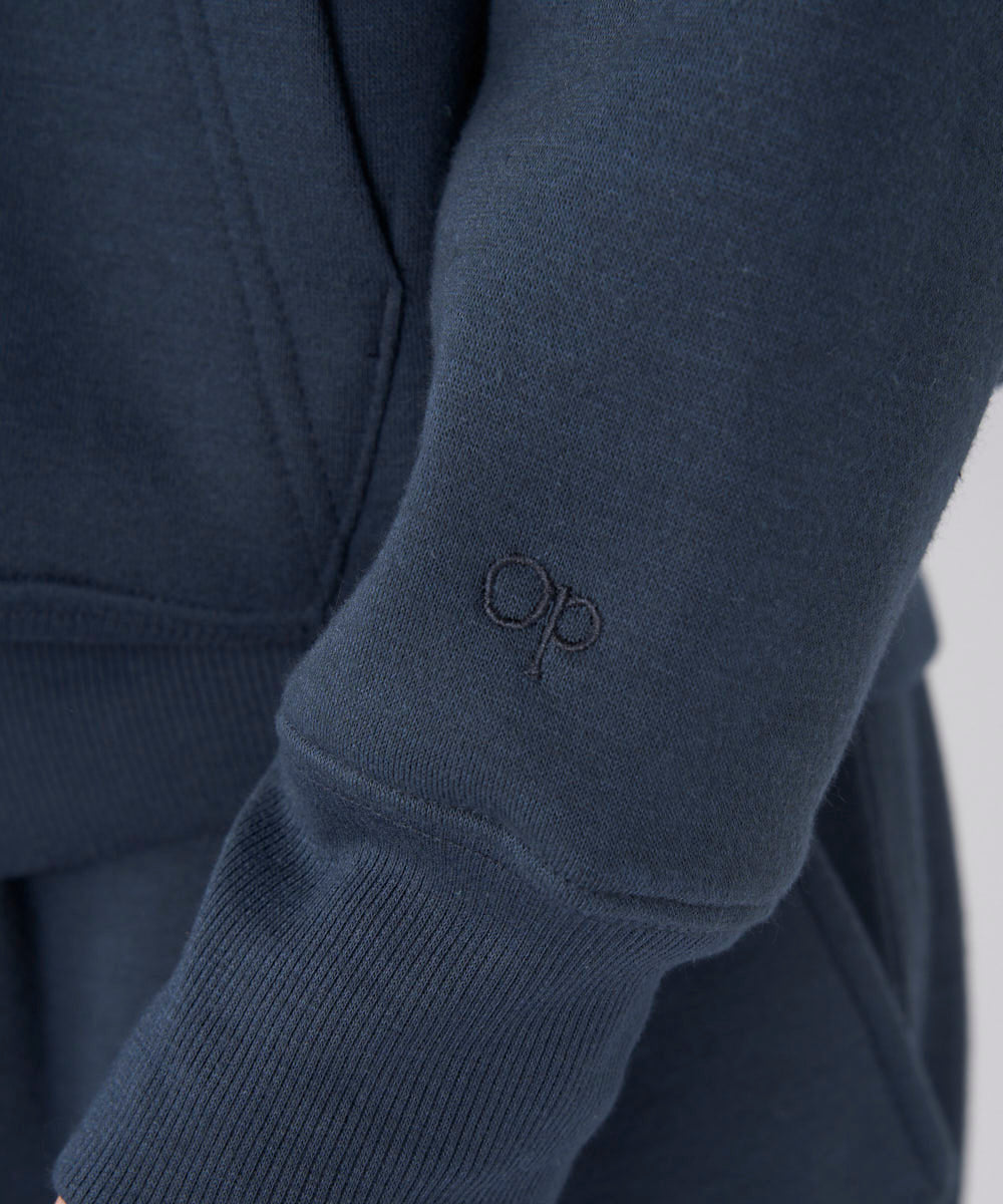 フロントに控えめなロゴがあしらわれており、カジュアルなシーンはもちろん、ちょっとした外出にも使いやすい一着です。