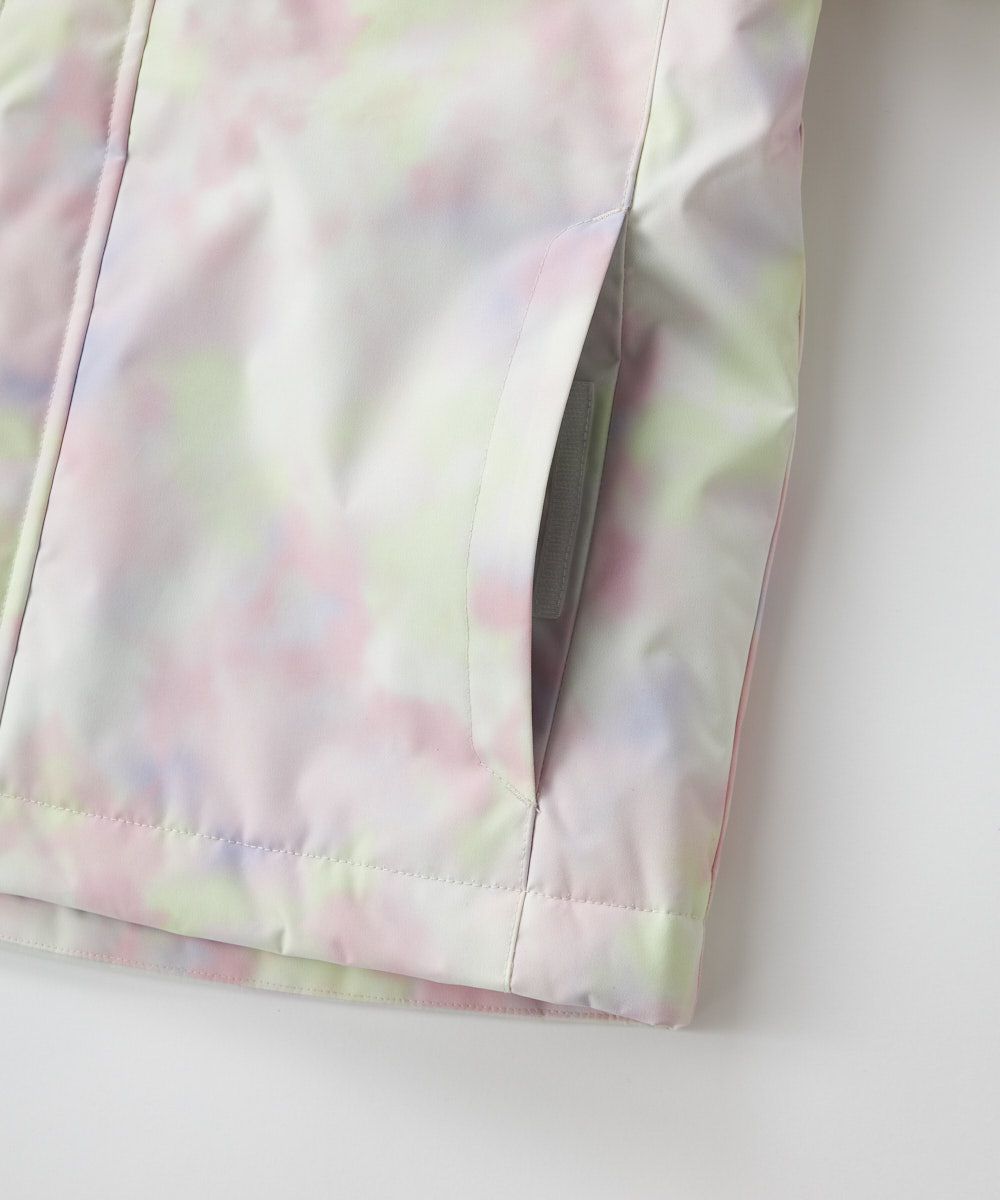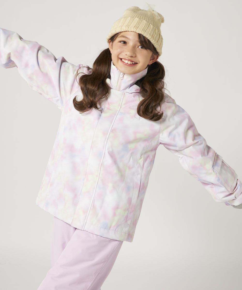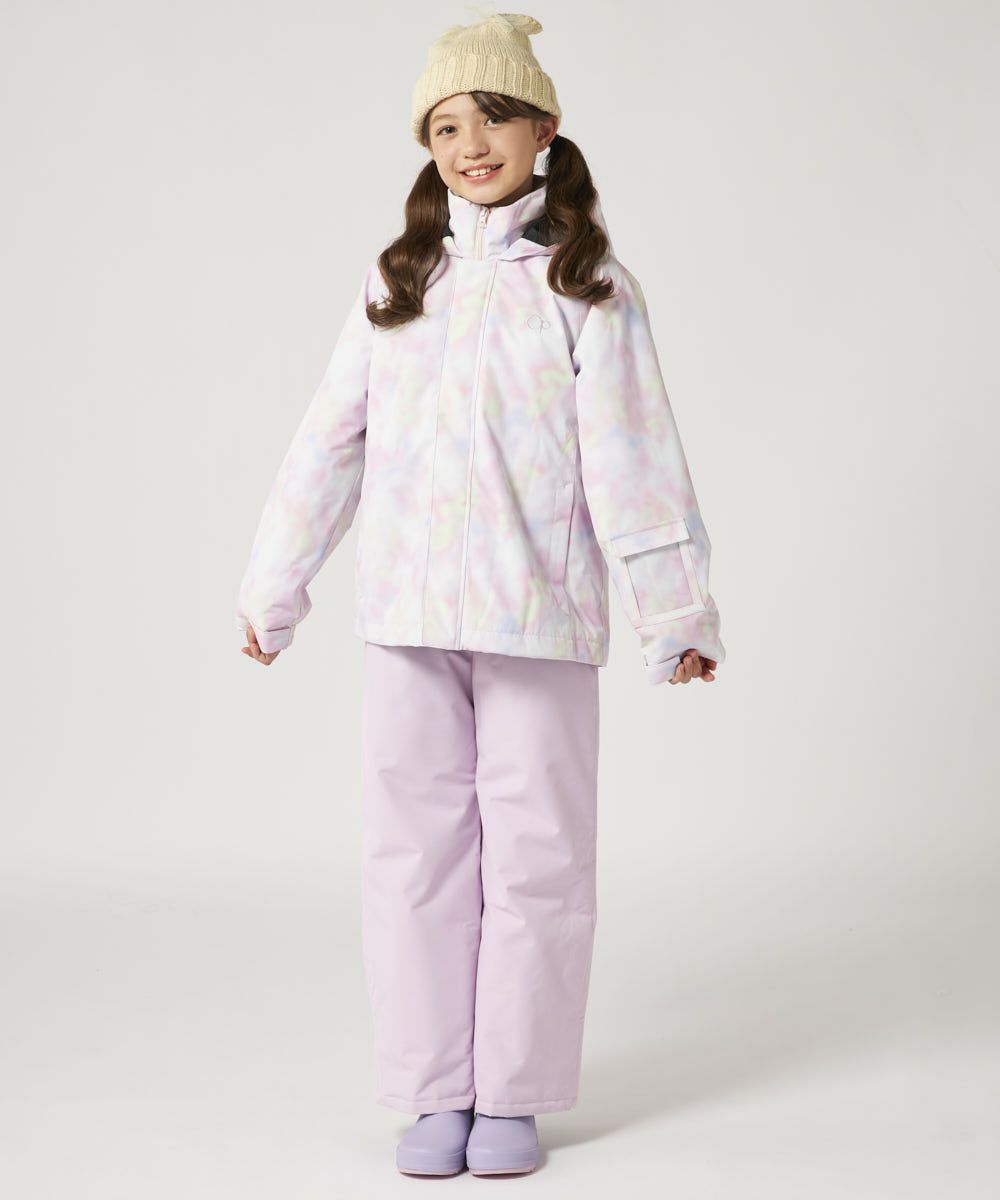 ジャケット&パンツのスキー・スノーボードウェア上下セットです。スノボーやスキー、雪遊びなどウインタースポーツで大活躍!ゲレンデで目を惹く、色鮮やかなタイダイ柄。サスペンダーで調整可能なので、成長に合わせて長く着られます。左袖には便利なパスケース付き。お子様が安心して着用できる、ママもうれしい機能付き!