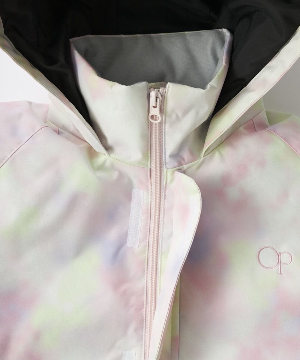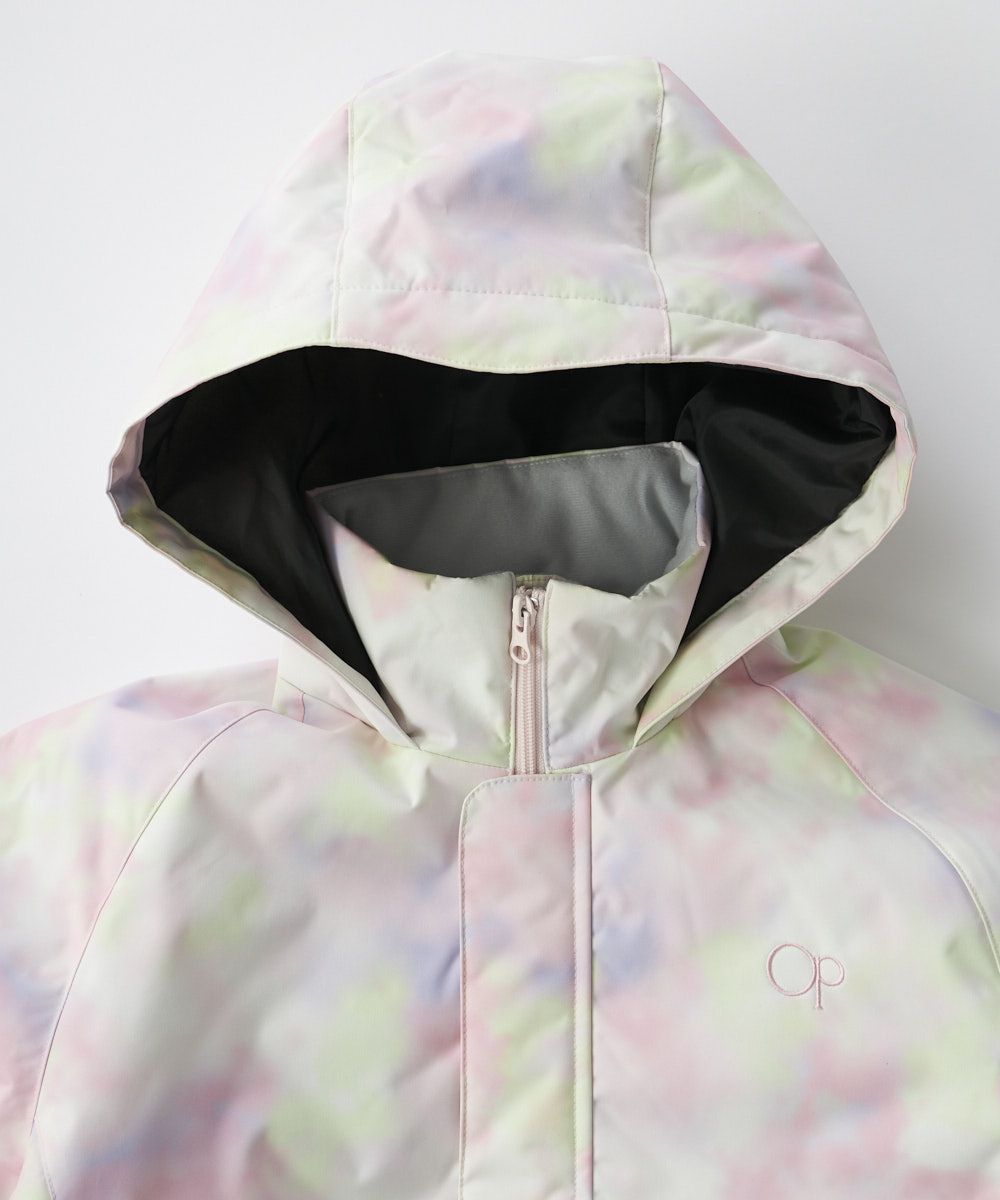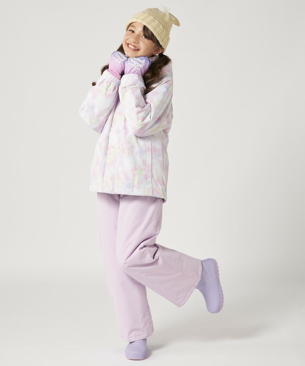 ジャケット&パンツのスキー・スノーボードウェア上下セットです。スノボーやスキー、雪遊びなどウインタースポーツで大活躍!ゲレンデで目を惹く、色鮮やかなタイダイ柄。サスペンダーで調整可能なので、成長に合わせて長く着られます。左袖には便利なパスケース付き。お子様が安心して着用できる、ママもうれしい機能付き!