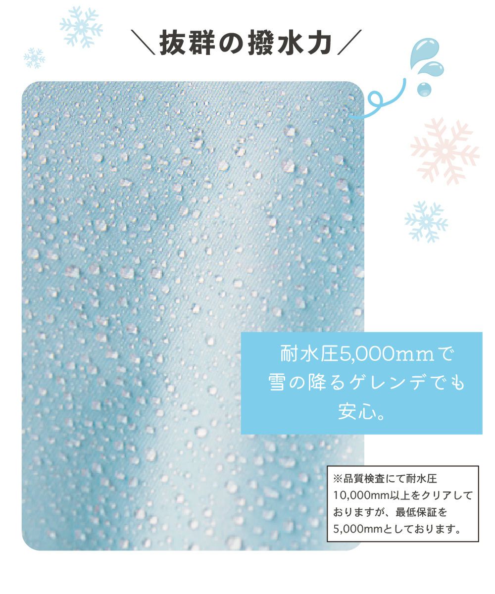 ・耐水圧5,000mmなので、雪が降るゲレンデでも安心