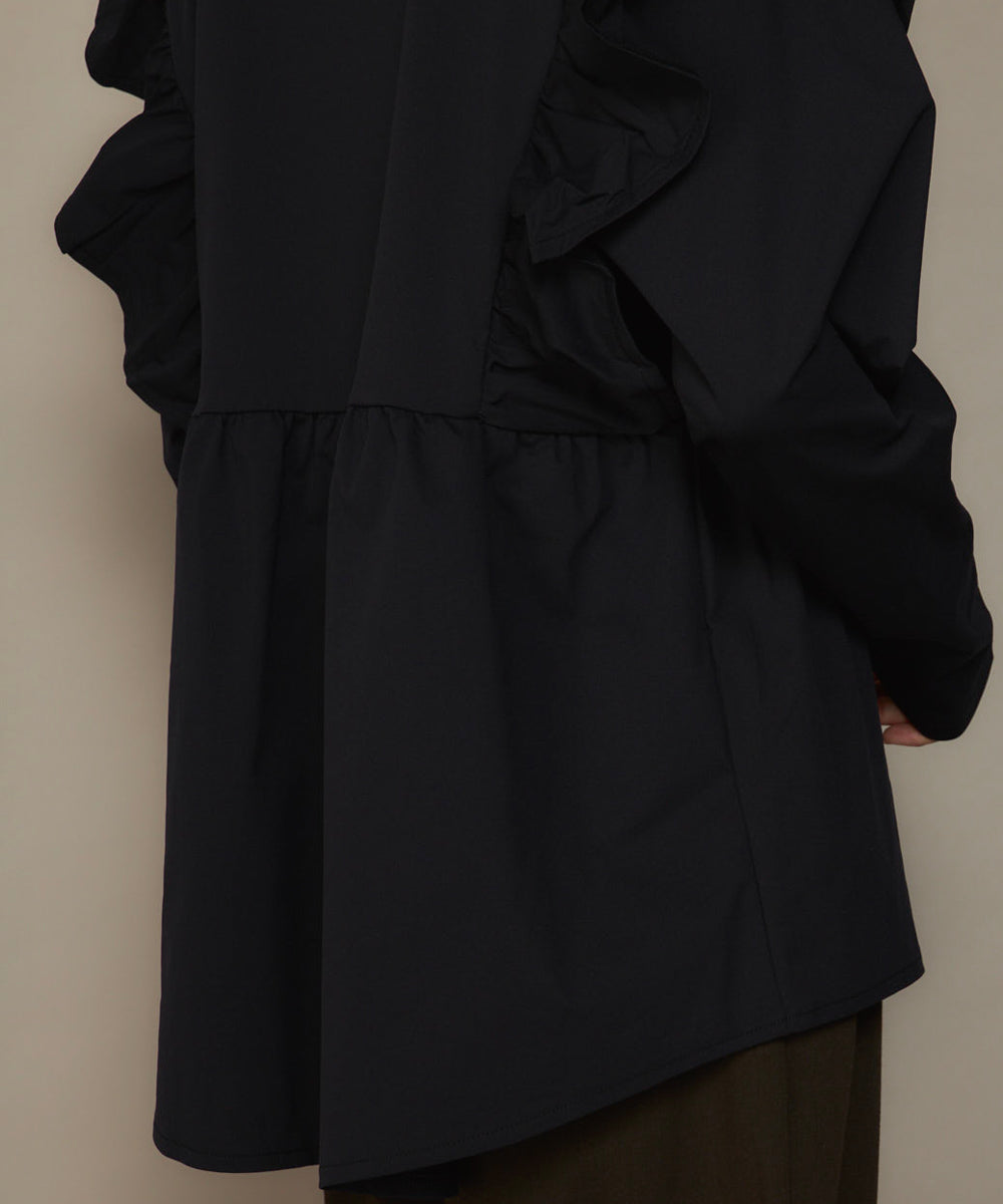 ふんわりと広がるフレアシルエットが華やかさを演出し、シンプルながらも着映えする一着です。
