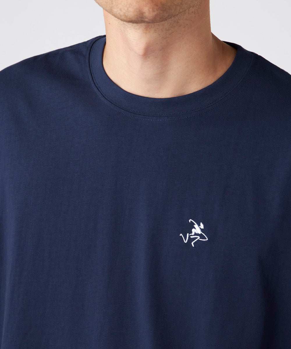 胸元にさりげなく施されたワンポイントデザインが、ベーシックなスタイルに個性をプラス。