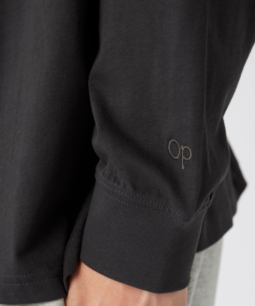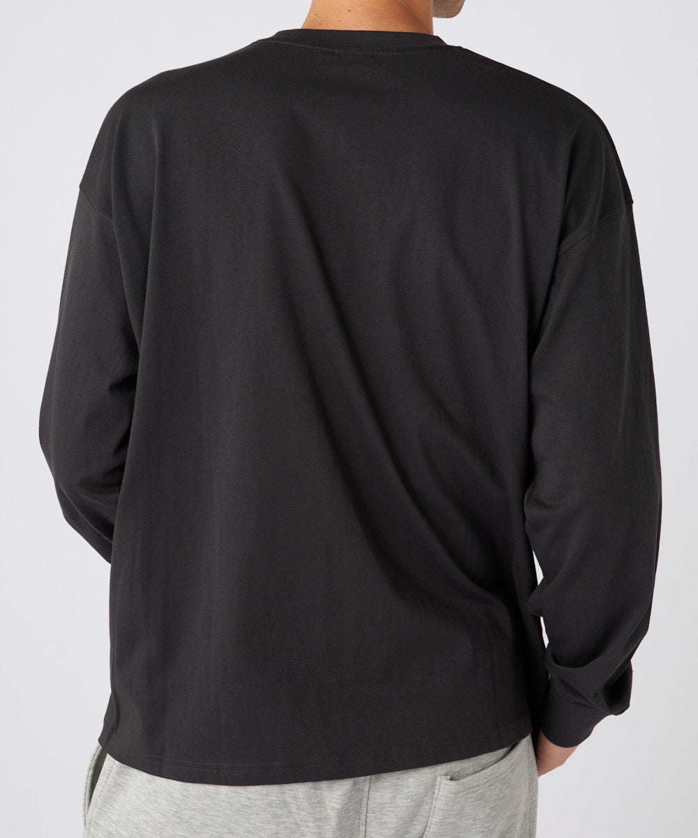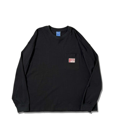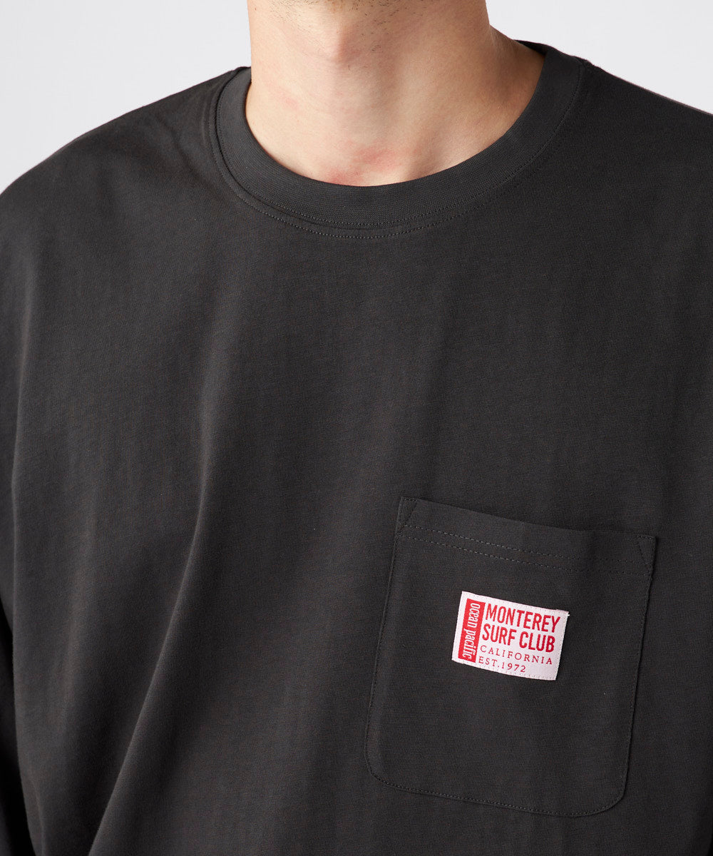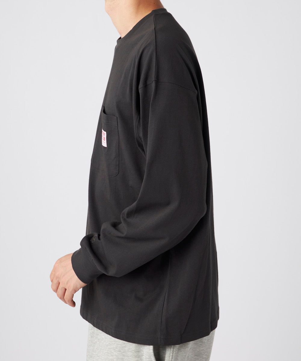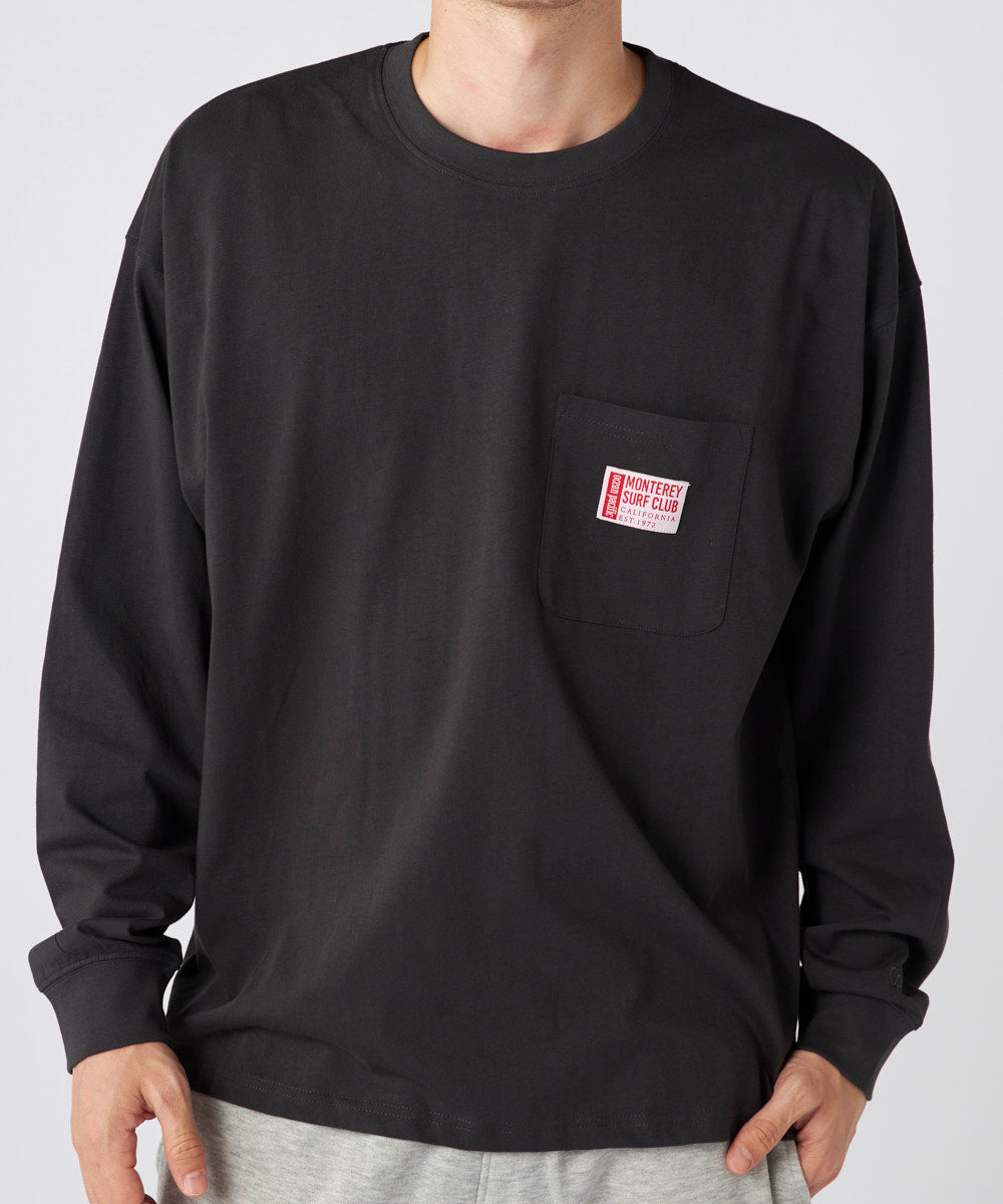胸元にポケットとワンポイントデザインが施された長袖Tシャツ。