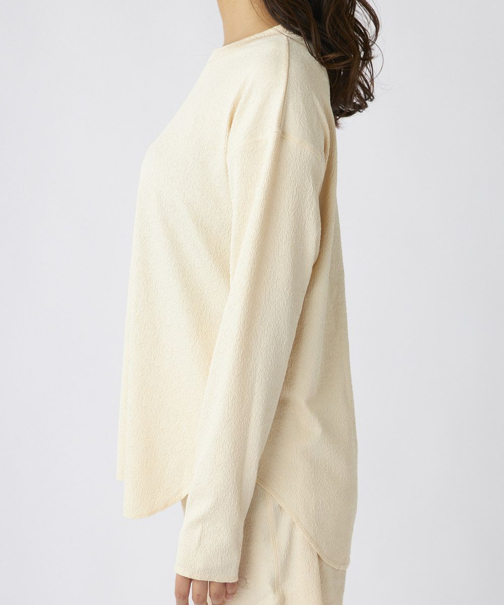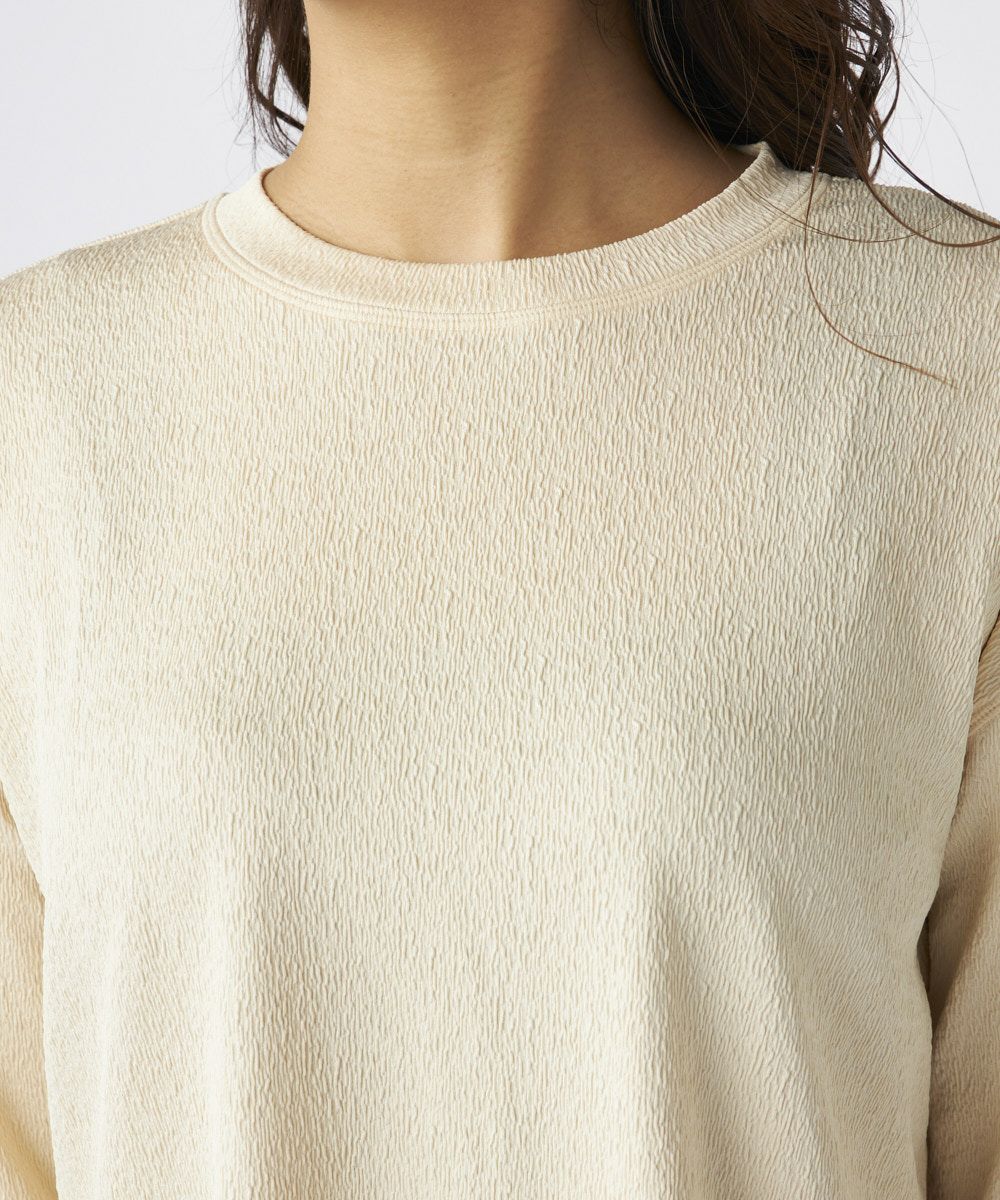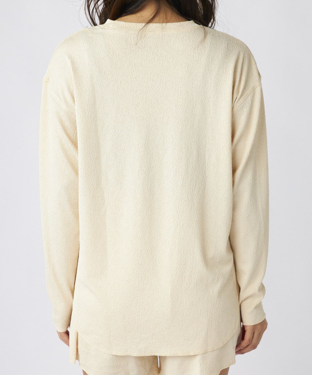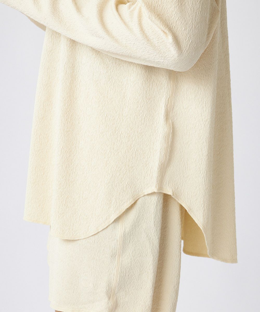 トップス、ボトムスには、くしゅっとしたシワ感がかわいく、伸縮性もある柔らかな生地を使用。紫外線遮蔽率は90%以上で着るだけで紫外線対策ができるので、ラッシュガードとしてはもちろんデイリーにもおすすめです。