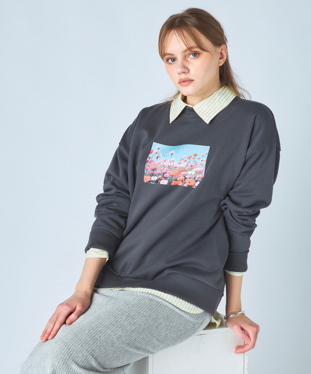鮮やかな花畑のフォトプリントが目を引き、自然の美しさを切り取ったような存在感のある一枚です!
