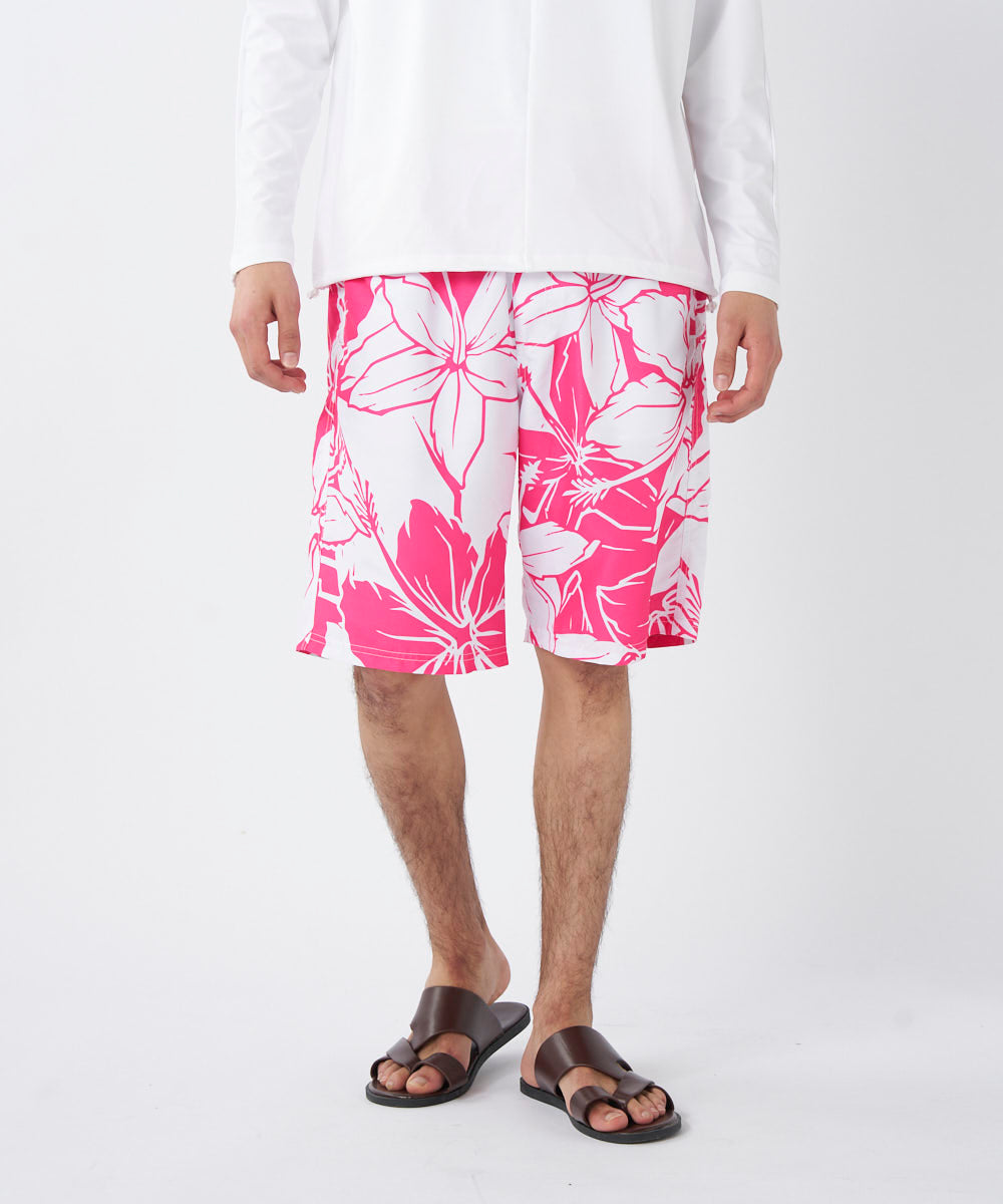 南国風なハイビスカス柄プリントはリゾートシーンを盛り上げてくれるショートパンツが登場!
