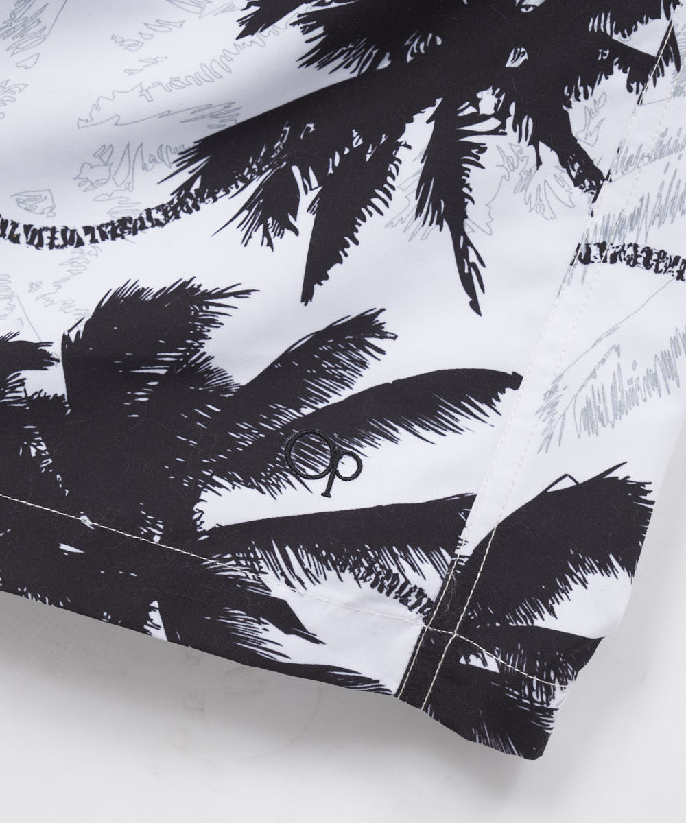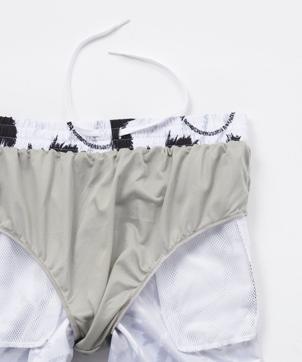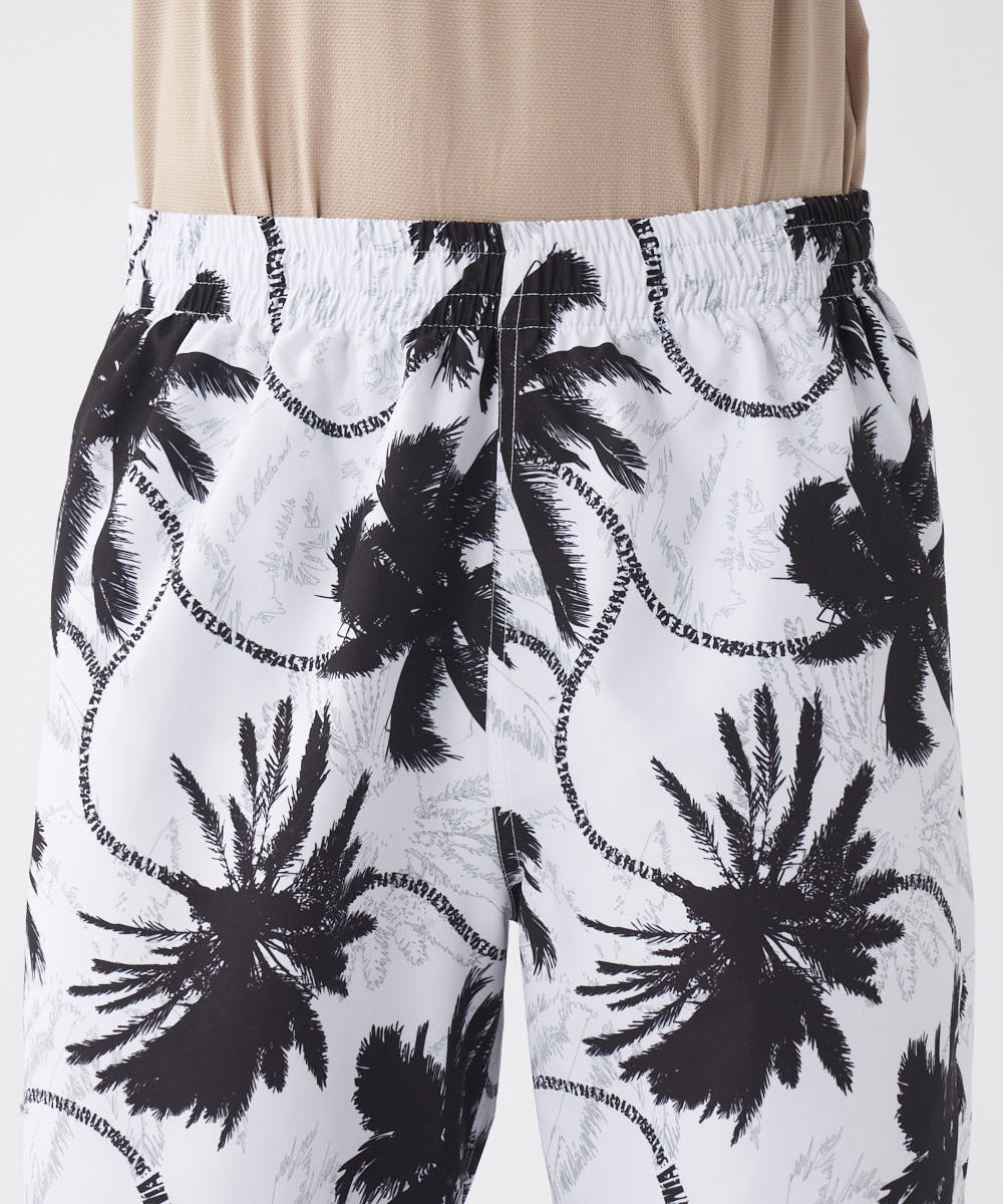 南国リゾートを思わせる大きめのリーフ柄が目を引く、夏にぴったりのメンズトランクス水着。