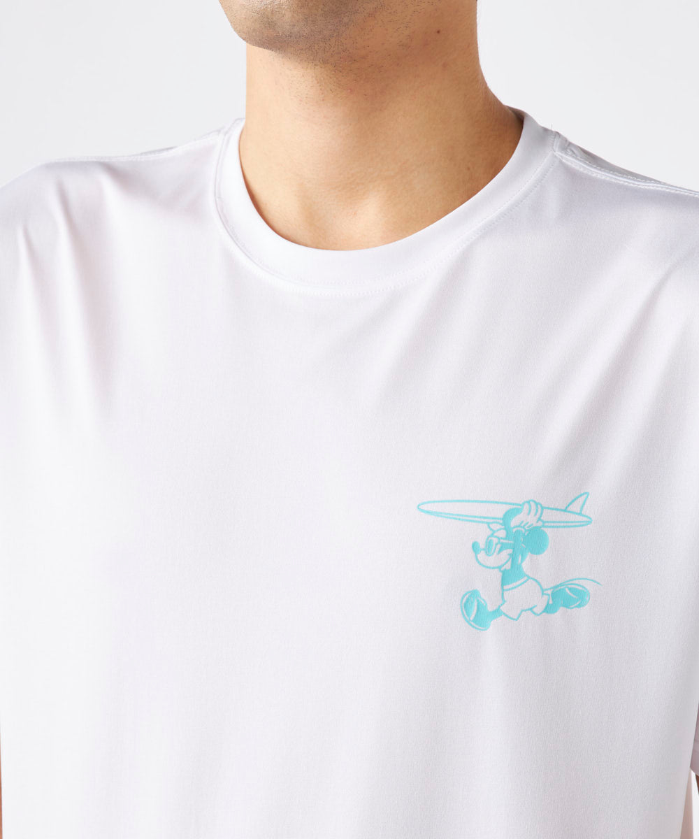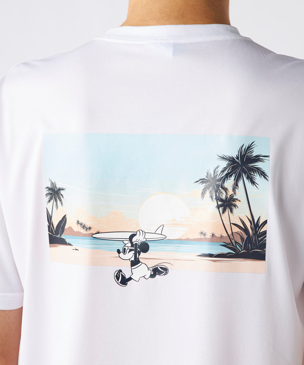 バックにはビーチでサーフボードを持ったミッキーがプリントされた、着るだけでハッピーになれる1枚。