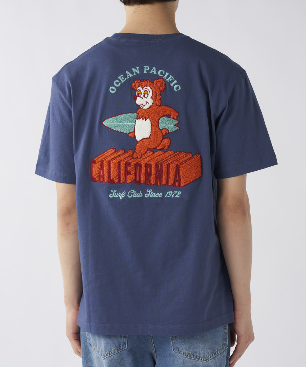 OPの人気キャラクター「カリフォルニアベア」が大きくバックに刺繍されたTシャツです!
