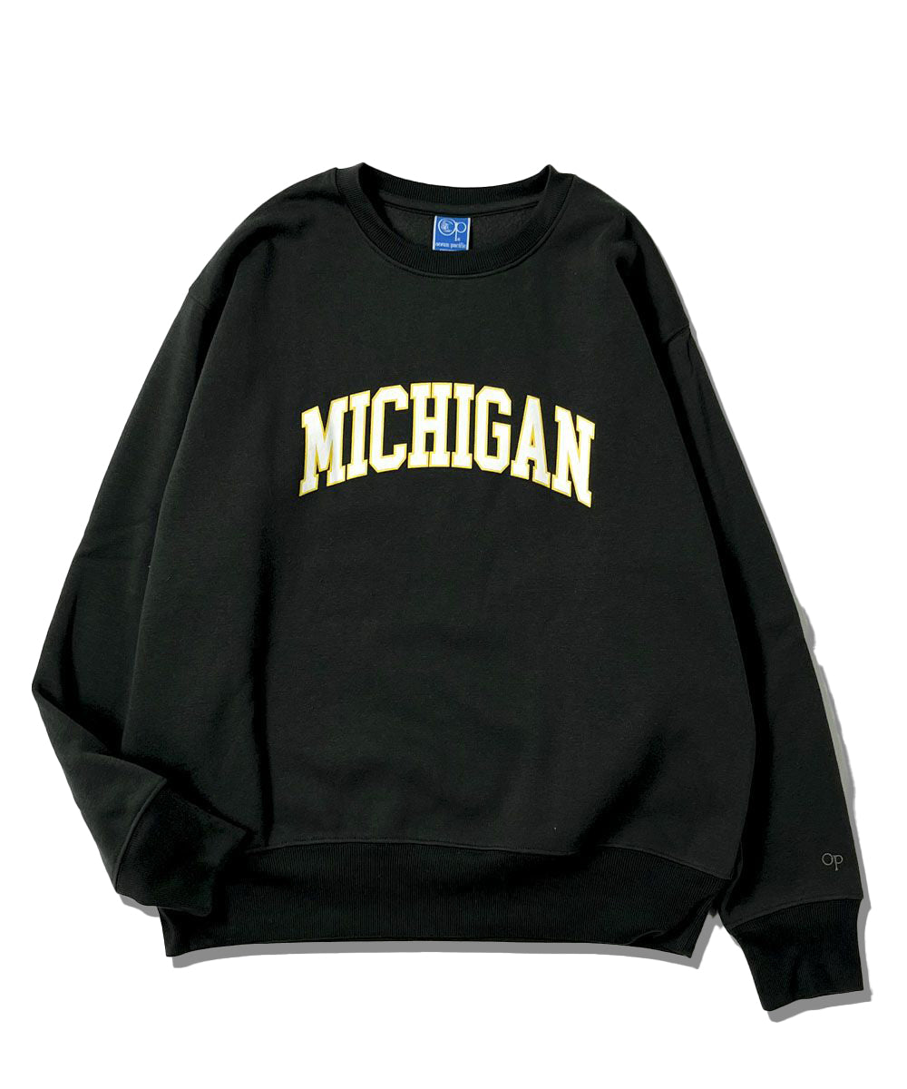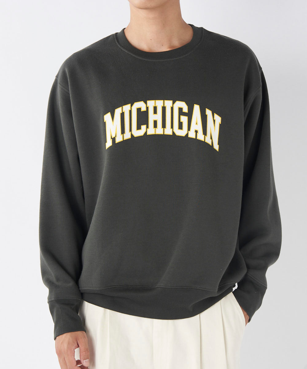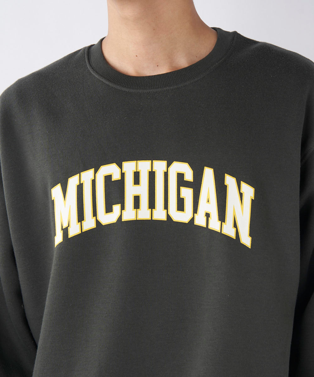 フロントに「MICHIGAN」ロゴがプリントされたクルースウェットが登場。