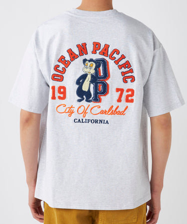 OPの人気キャラクター「カリフォルニアベア」が大きくバックに刺繍されたTシャツです!