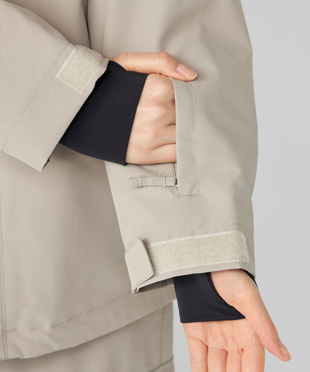 ・パスケース、袖チップポケット、リストゲーターなどスノーシーンにうれしい機能が充実