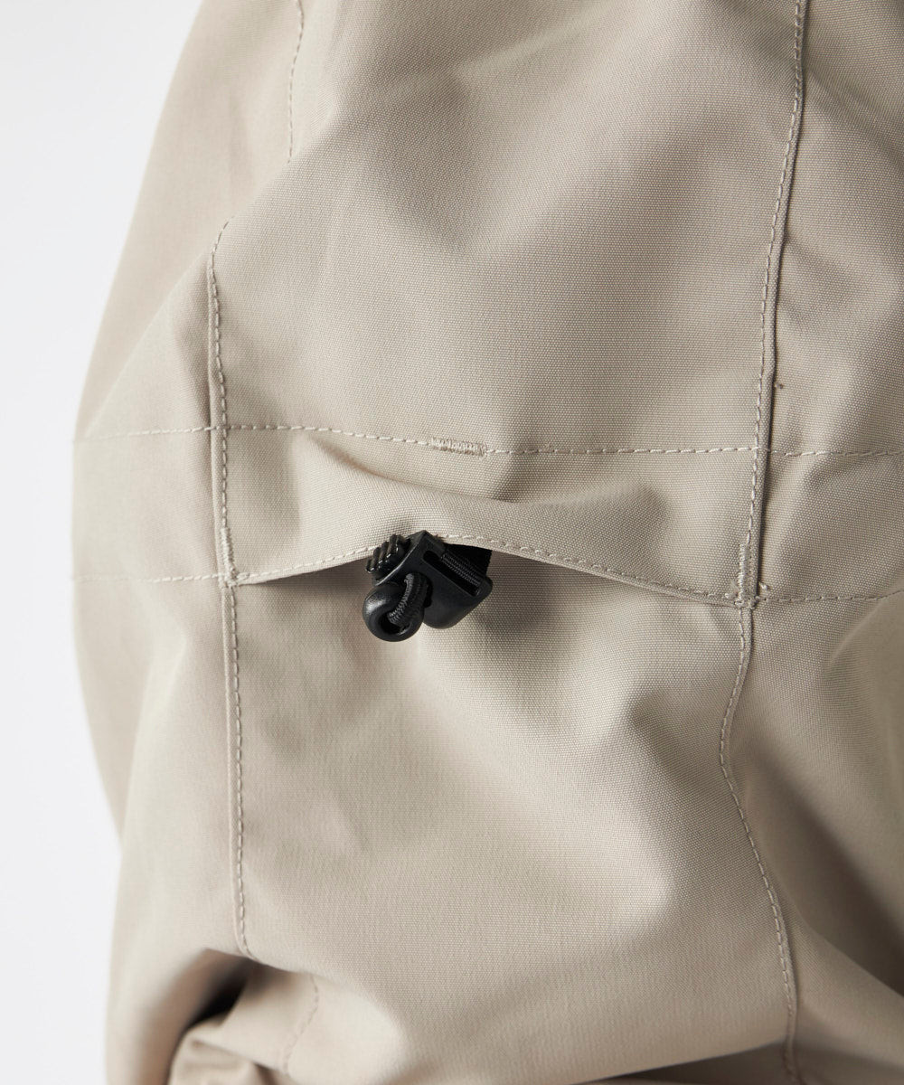 表地はポリエステル素材にポリウレタンラミネートを施し、しっかりとした耐水性と防風性を確保。