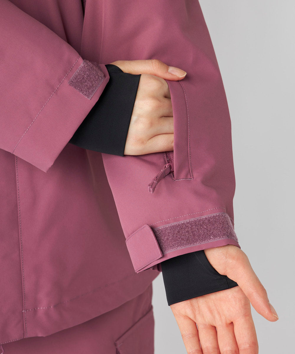 ・パスケース、袖チップポケット、リストゲーターなどスノーシーンにうれしい機能が充実