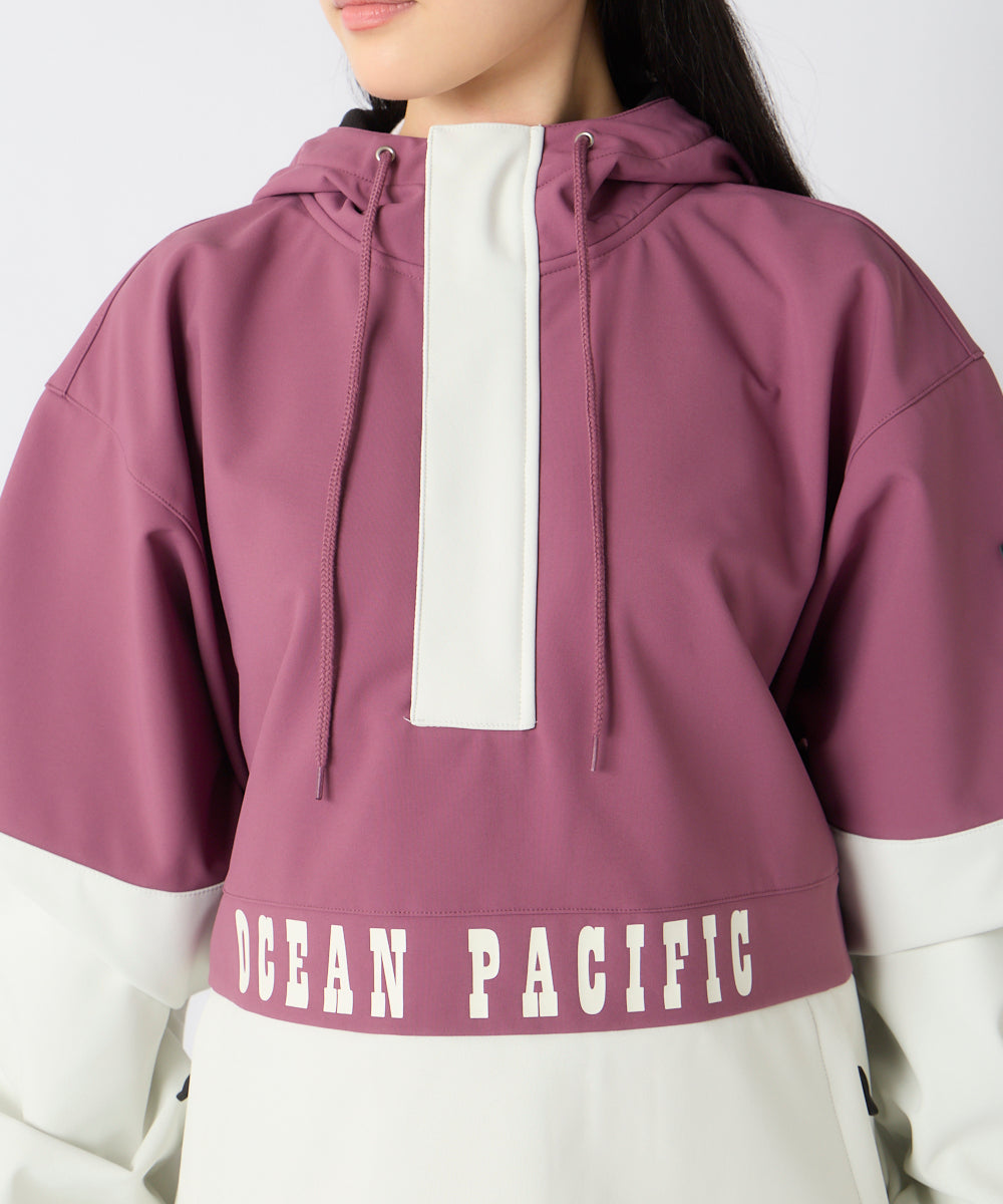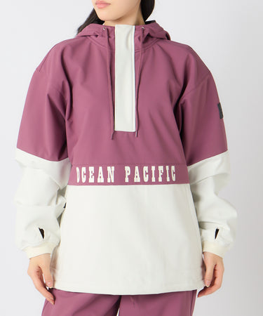 切り替えデザインと胸元の「OCEAN PACIFIC」ロゴが、レトロスポーティなムードを演出します。
