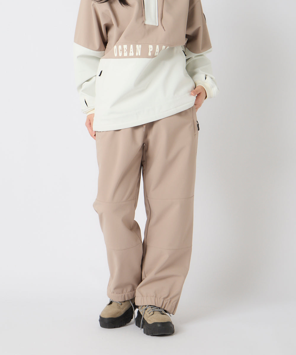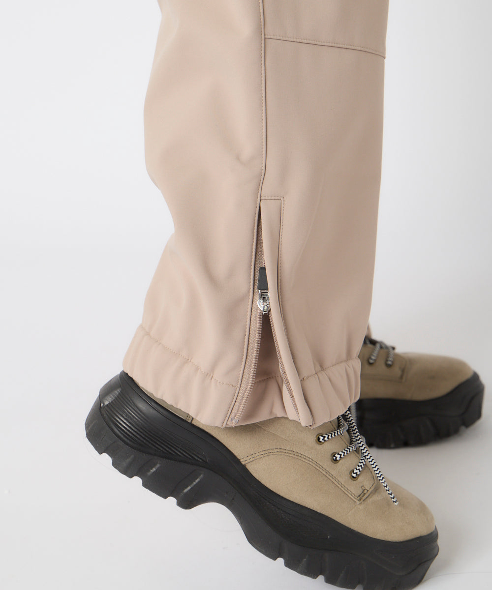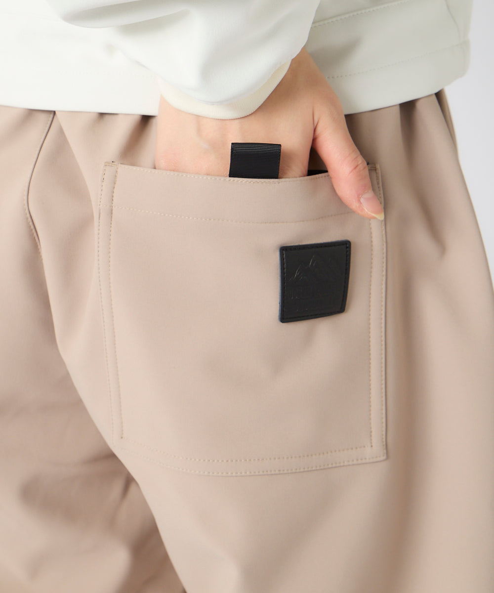 柔らかく、ほどよいハリ感のあるボンディング素材を使用したスノーパンツ。