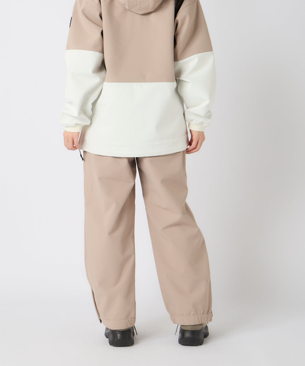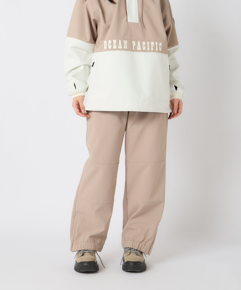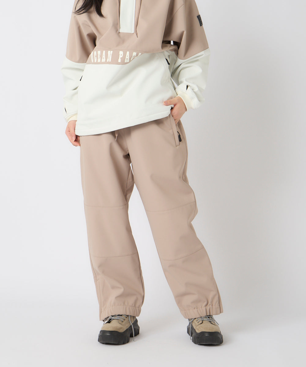 柔らかく、ほどよいハリ感のあるボンディング素材を使用したスノーパンツ。