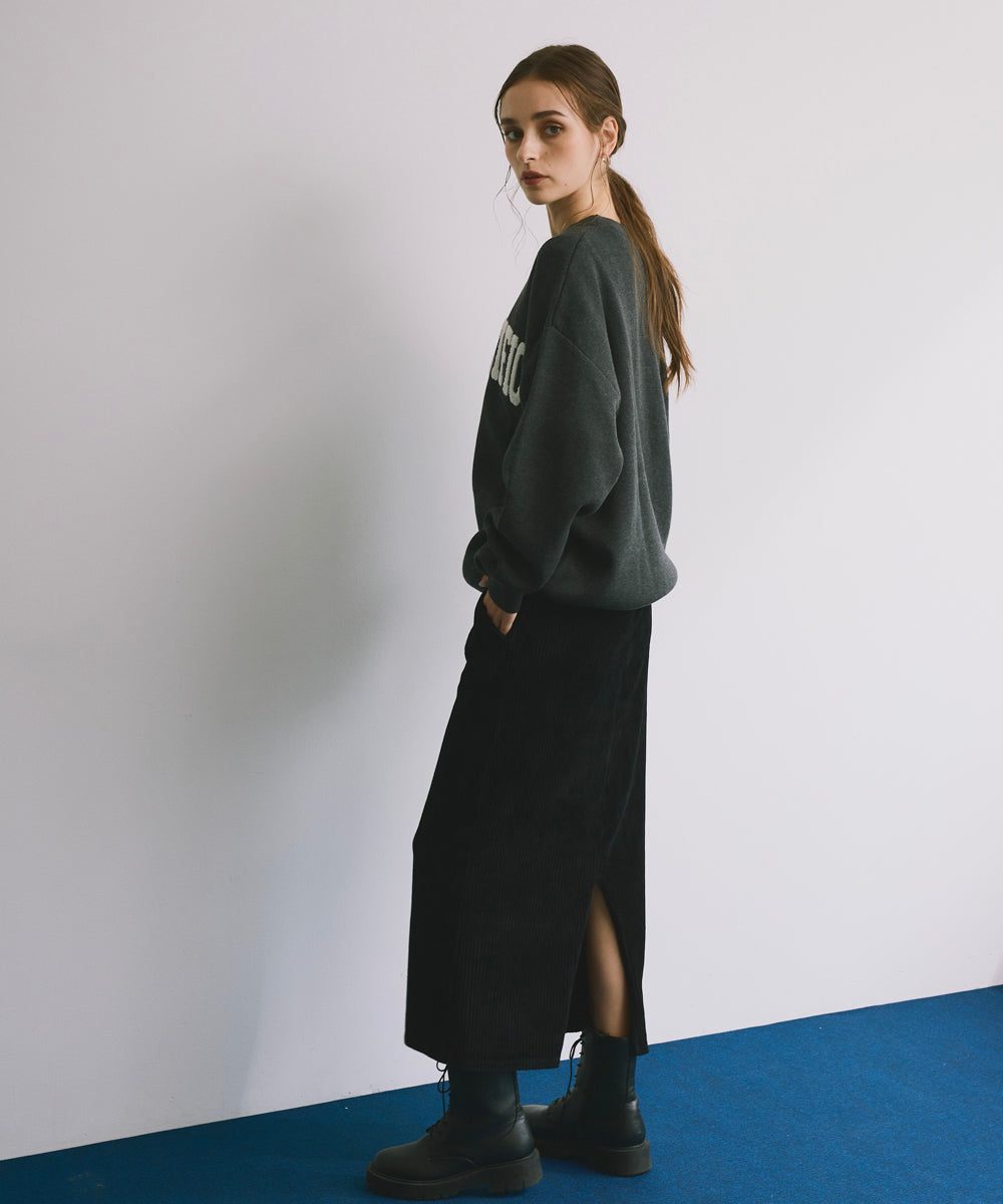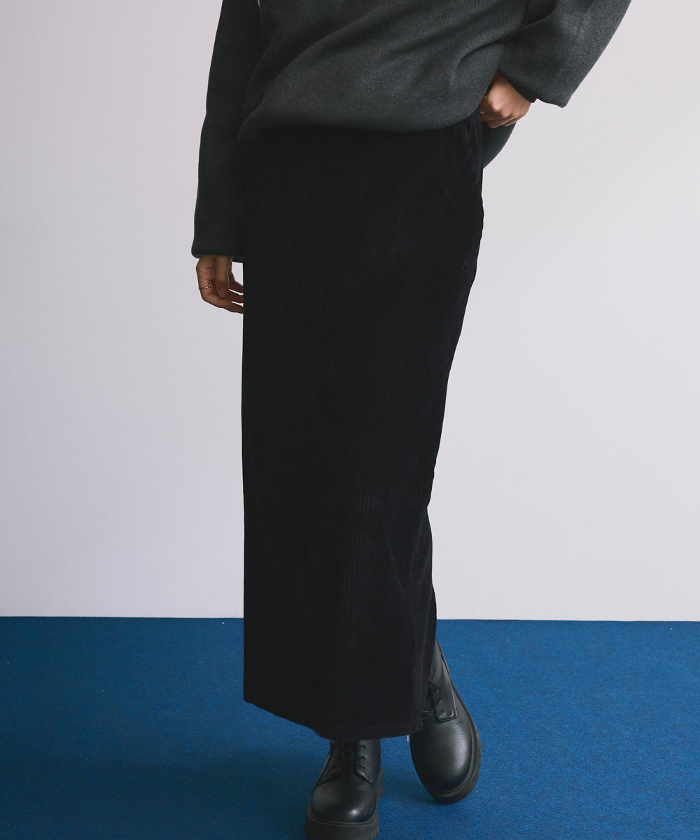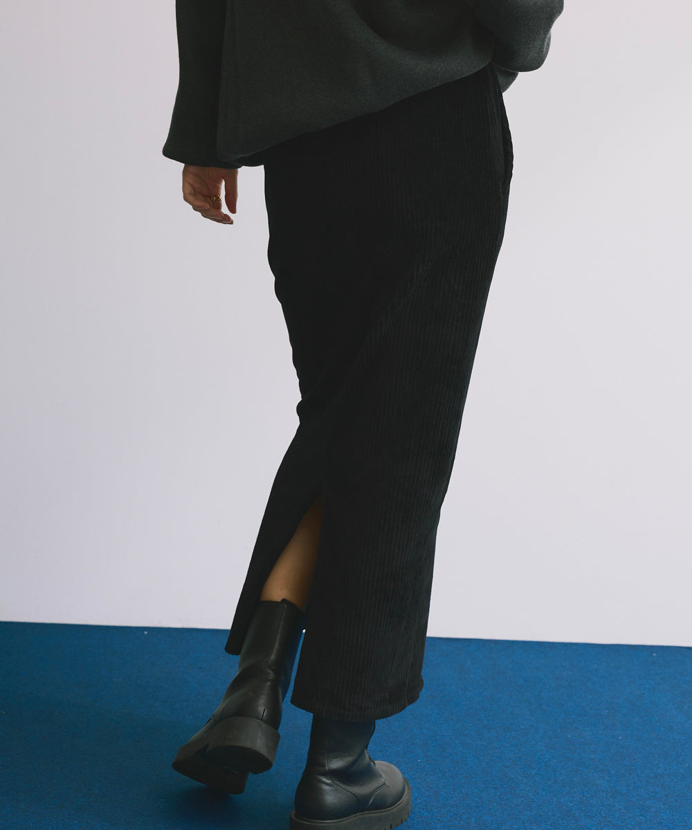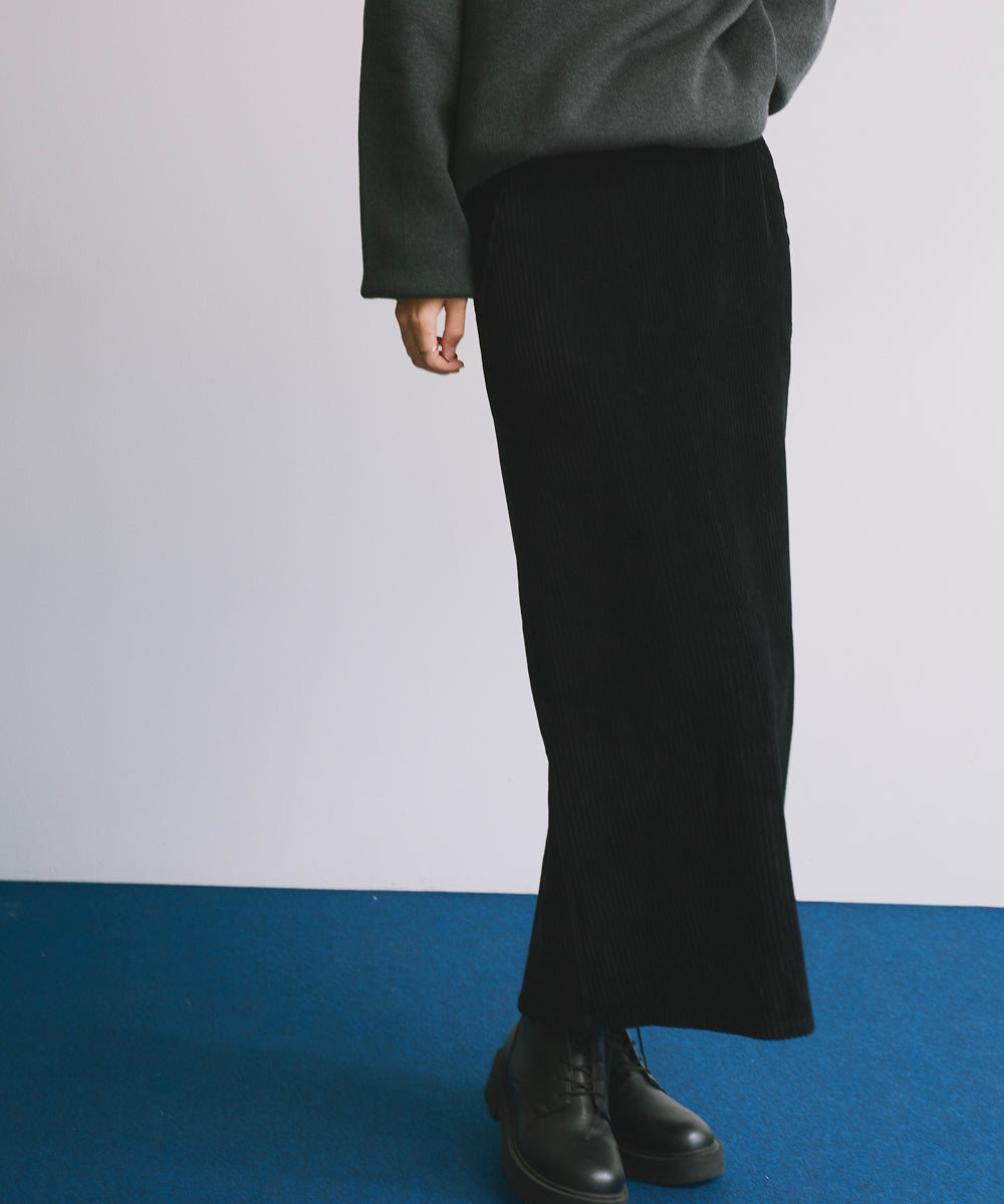 裾のスリットが女性らしく、ウエストゴムで履き心地は楽ちん!秋冬らしい温かみのあるコーデュロイで幅広いテイストにマッチ!!