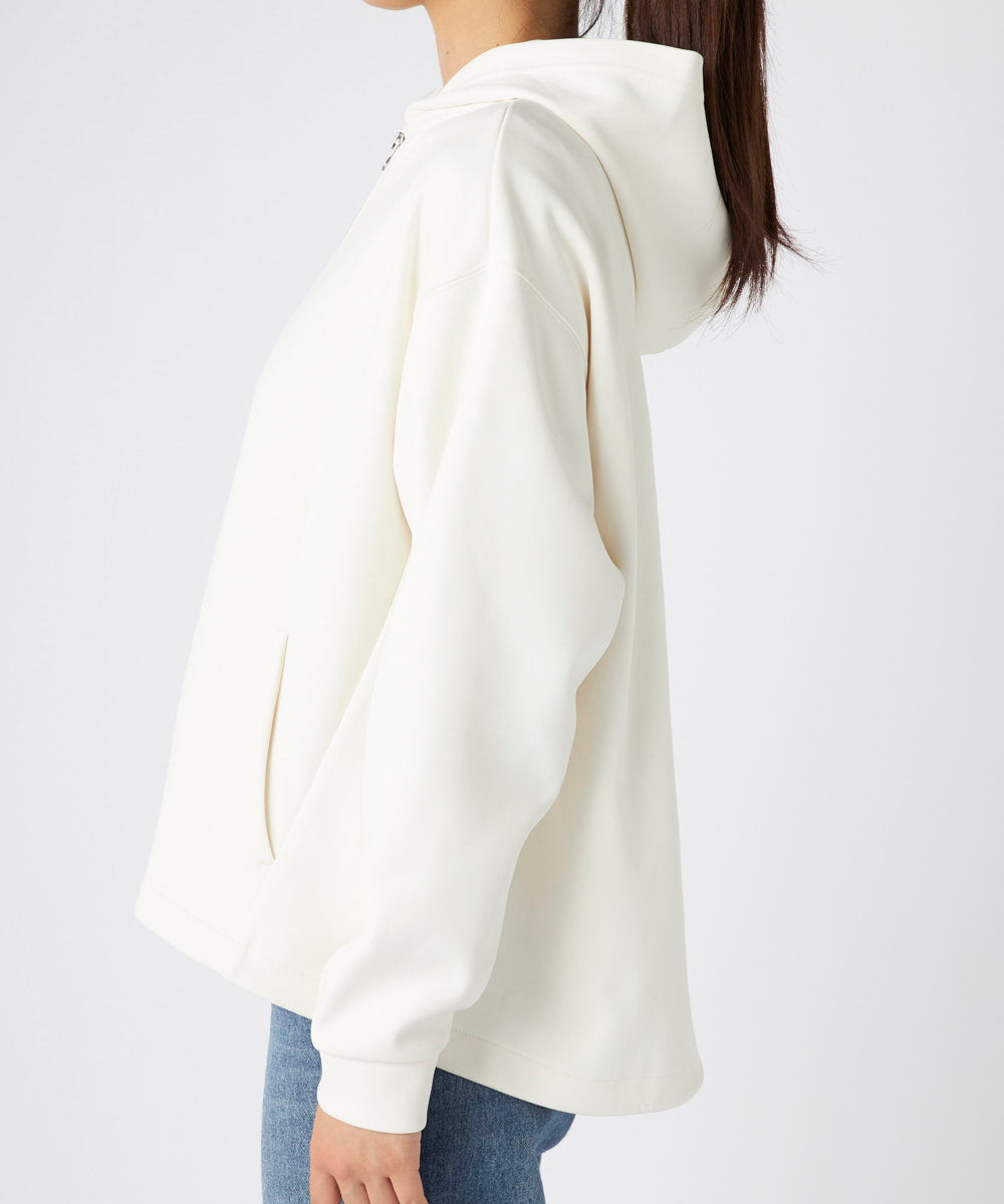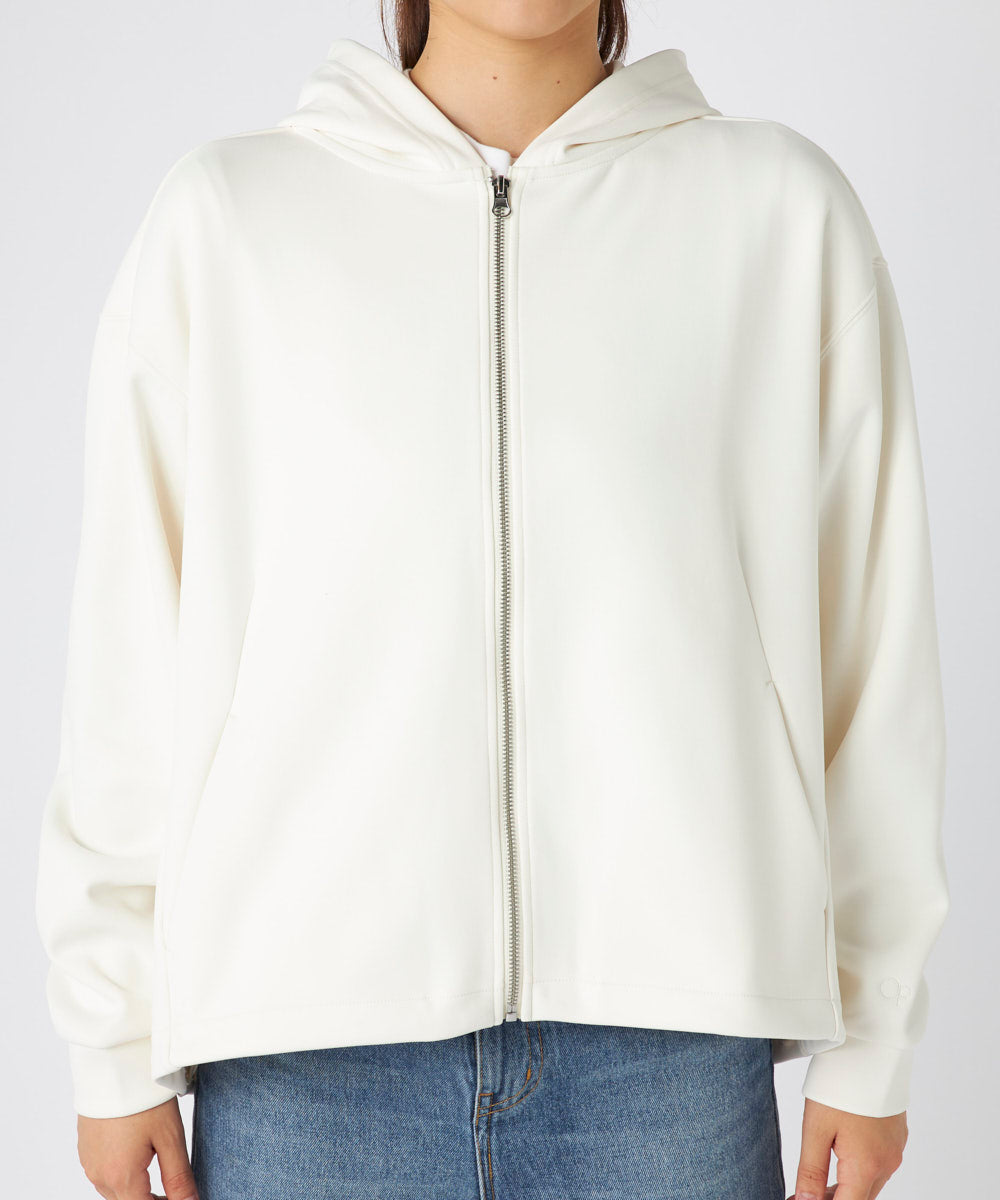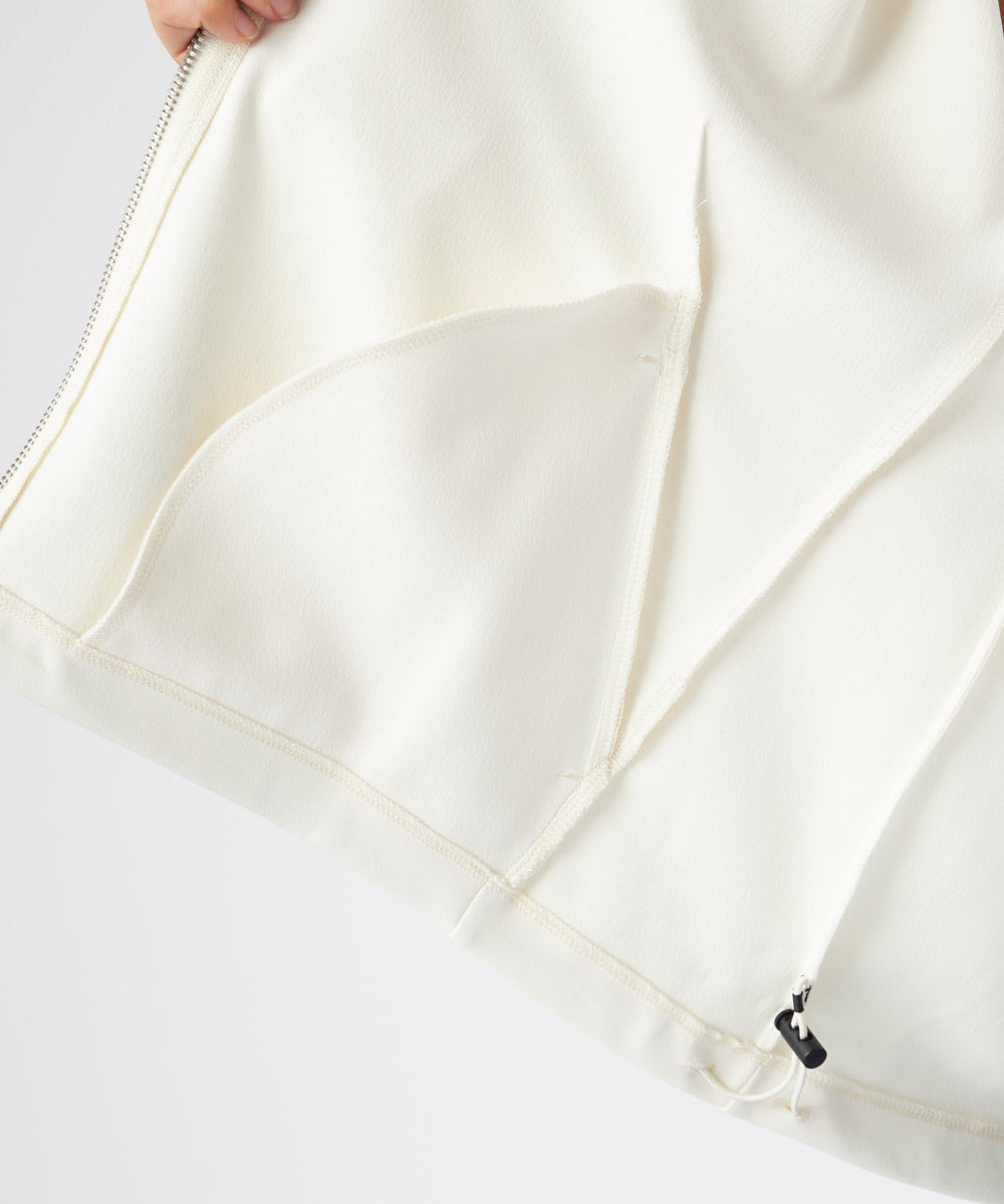 立体感×軽やかさが魅力的!ふくらみ感のあるダンボールニットを使用した、裾ドローコード付きのジップアップパーカーは大人カジュアルスタイルにぴったり◎