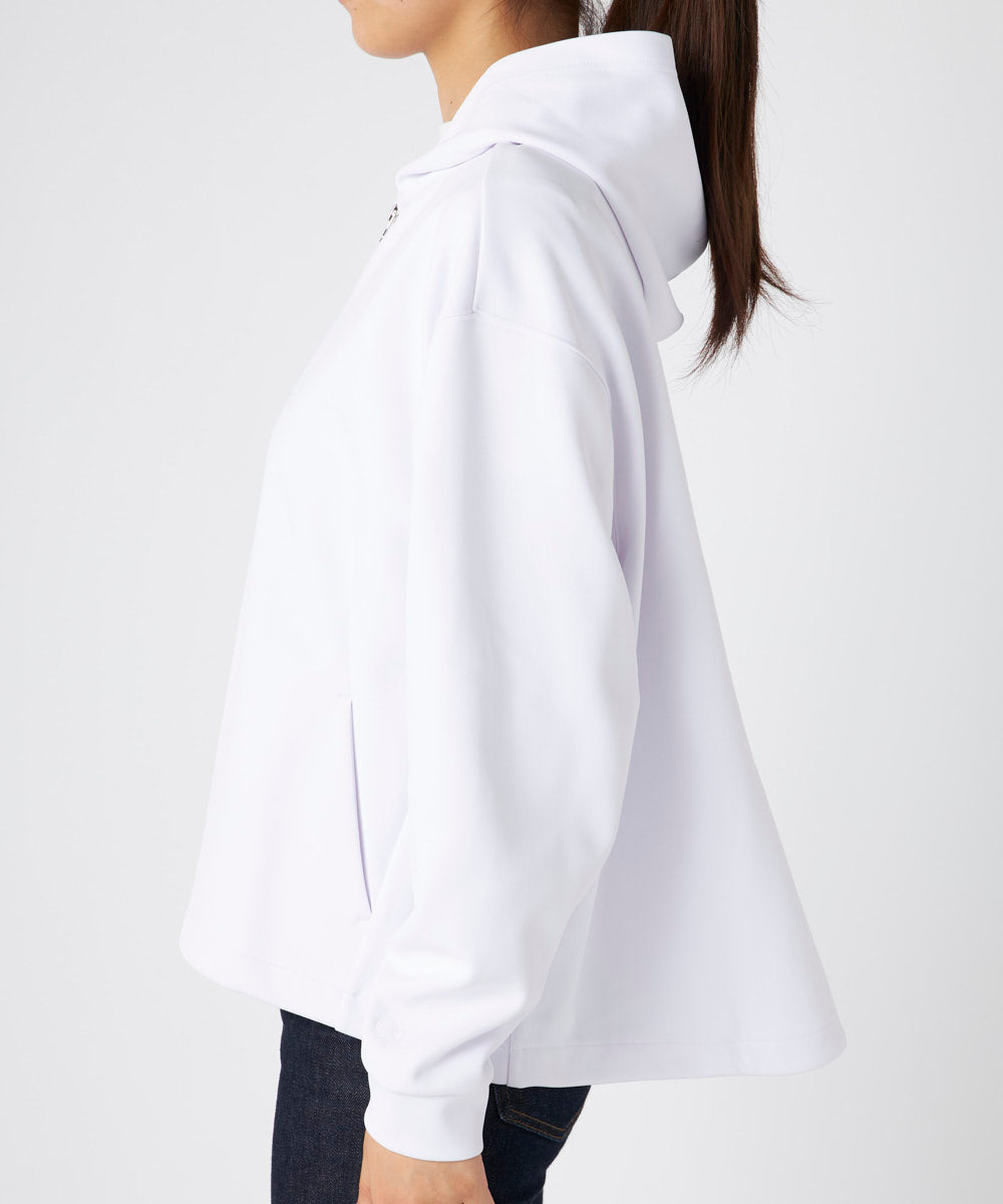 立体感×軽やかさが魅力的!ふくらみ感のあるダンボールニットを使用した、裾ドローコード付きのジップアップパーカーは大人カジュアルスタイルにぴったり◎