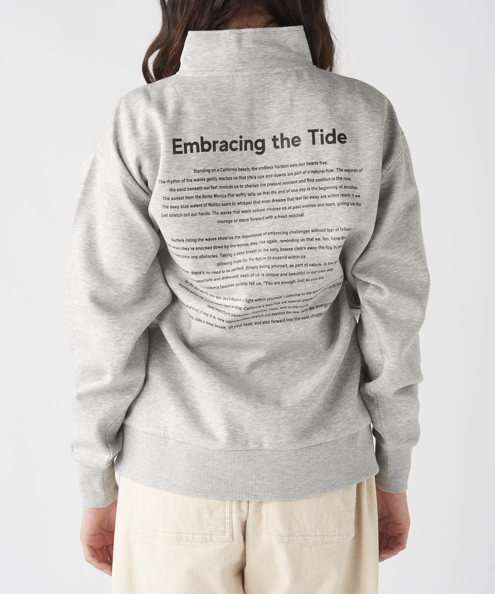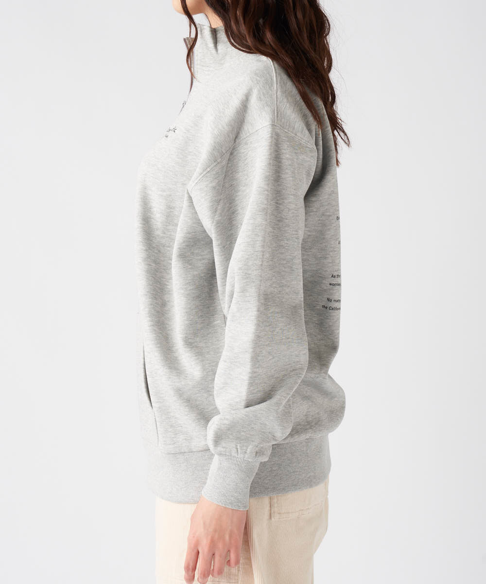 胸元のブランドロゴと、 背中に大胆に施されたメッセージが目を引くスウェットです!カジュアルストリートなイメージで、ハーフジッ プ仕様なので、気温やスタイリングに合わせて襟元の表情を変えられるのが魅力♪