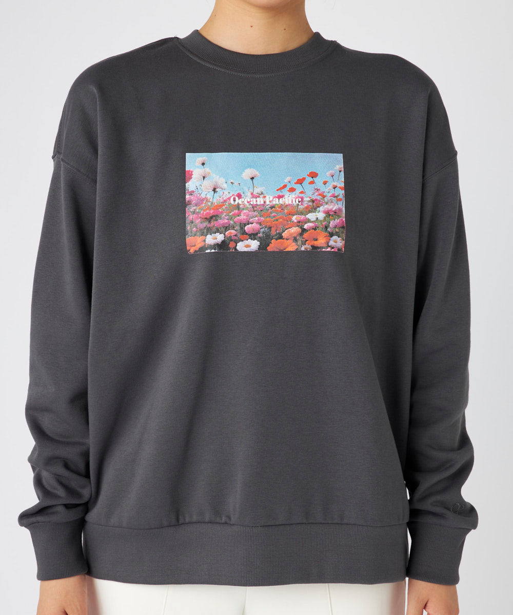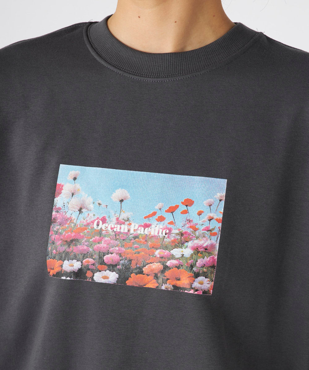 鮮やかな花畑のフォトプリントが目を引き、自然の美しさを切り取ったような存在感のある一枚です!