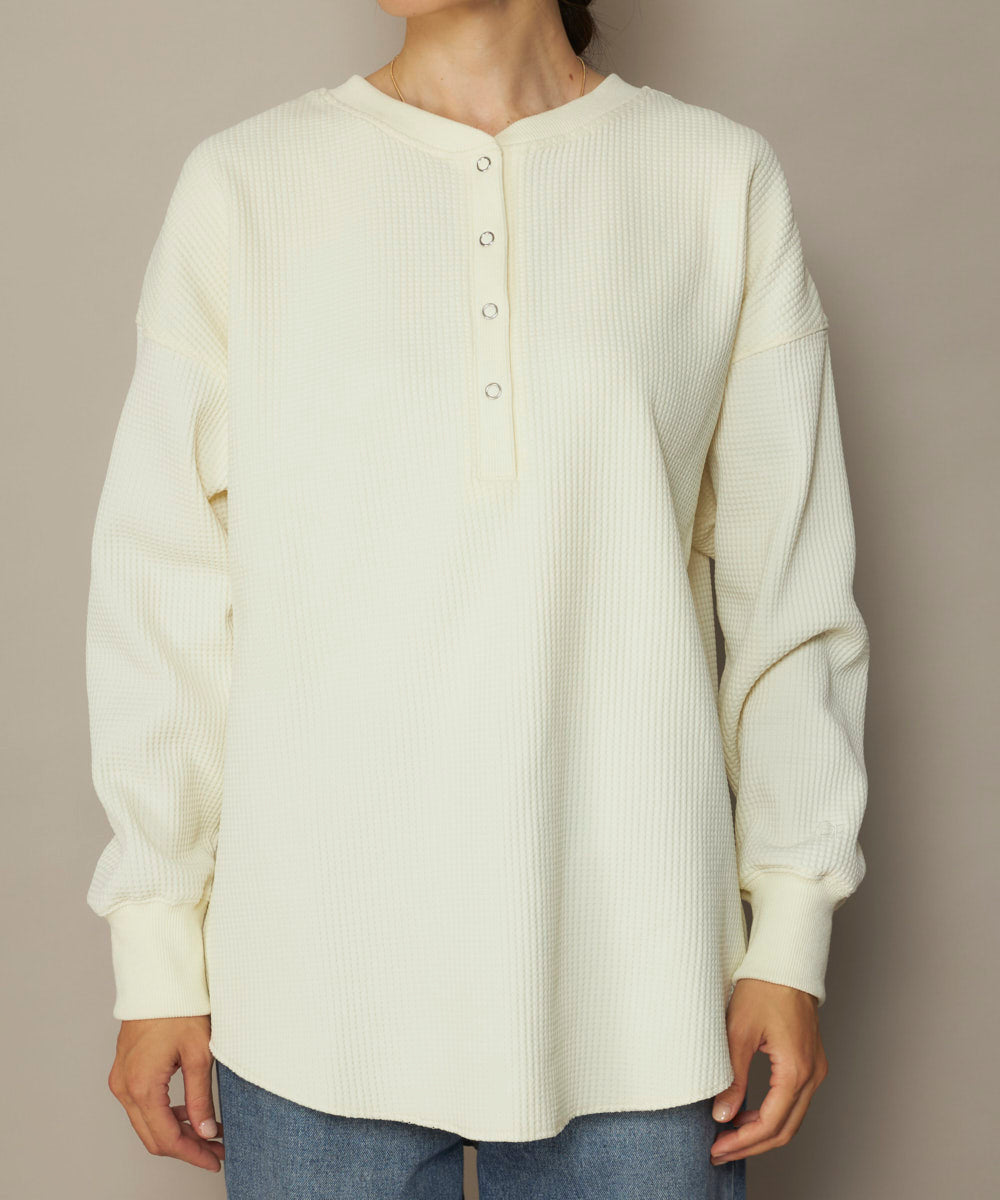 秋の始まりにぴったりな、軽やかワッフルロンT。