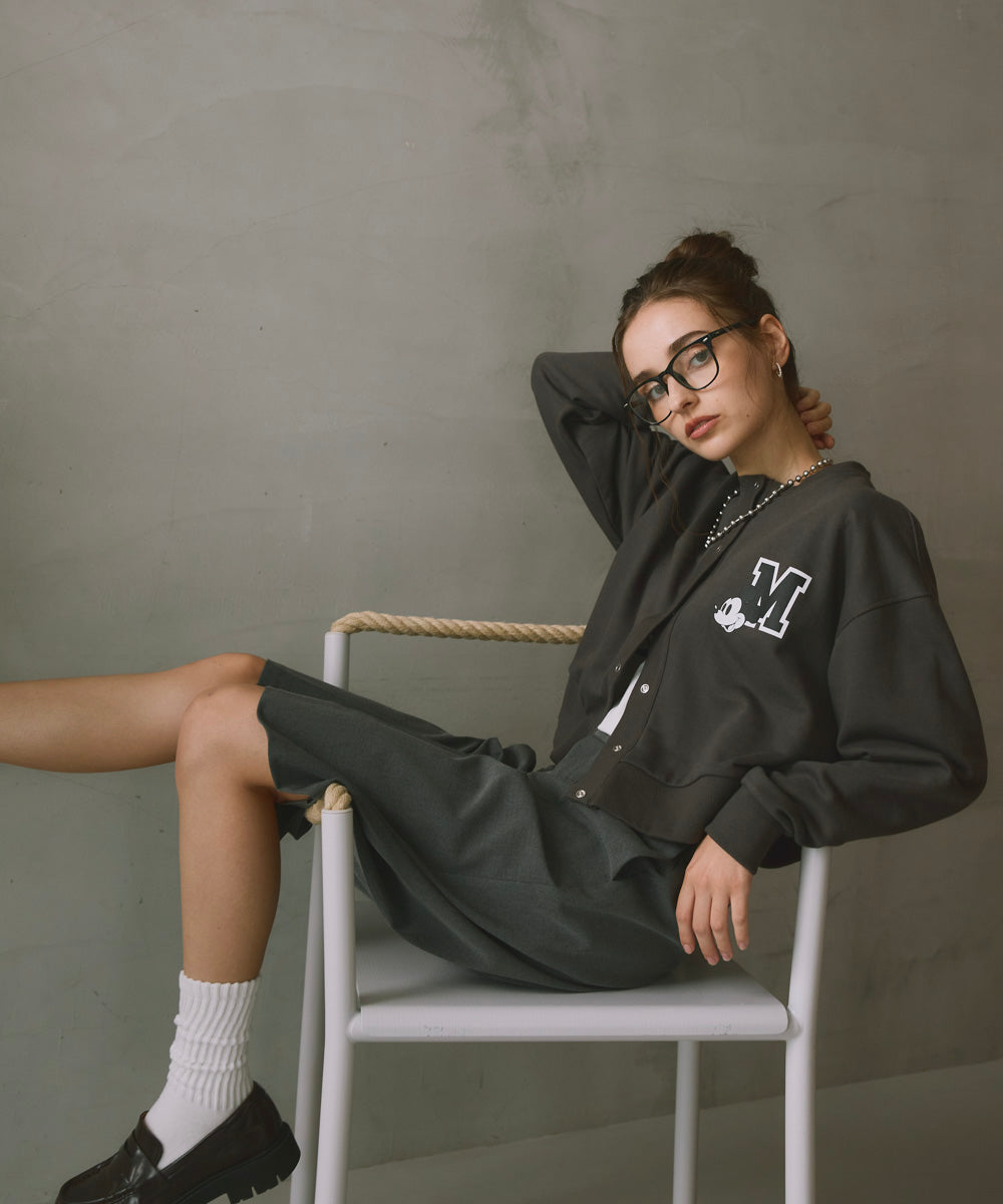 胸もとにはちょこんとミッキーのフェイスプリント+大きなアルファベット「M」がアクセントに♪