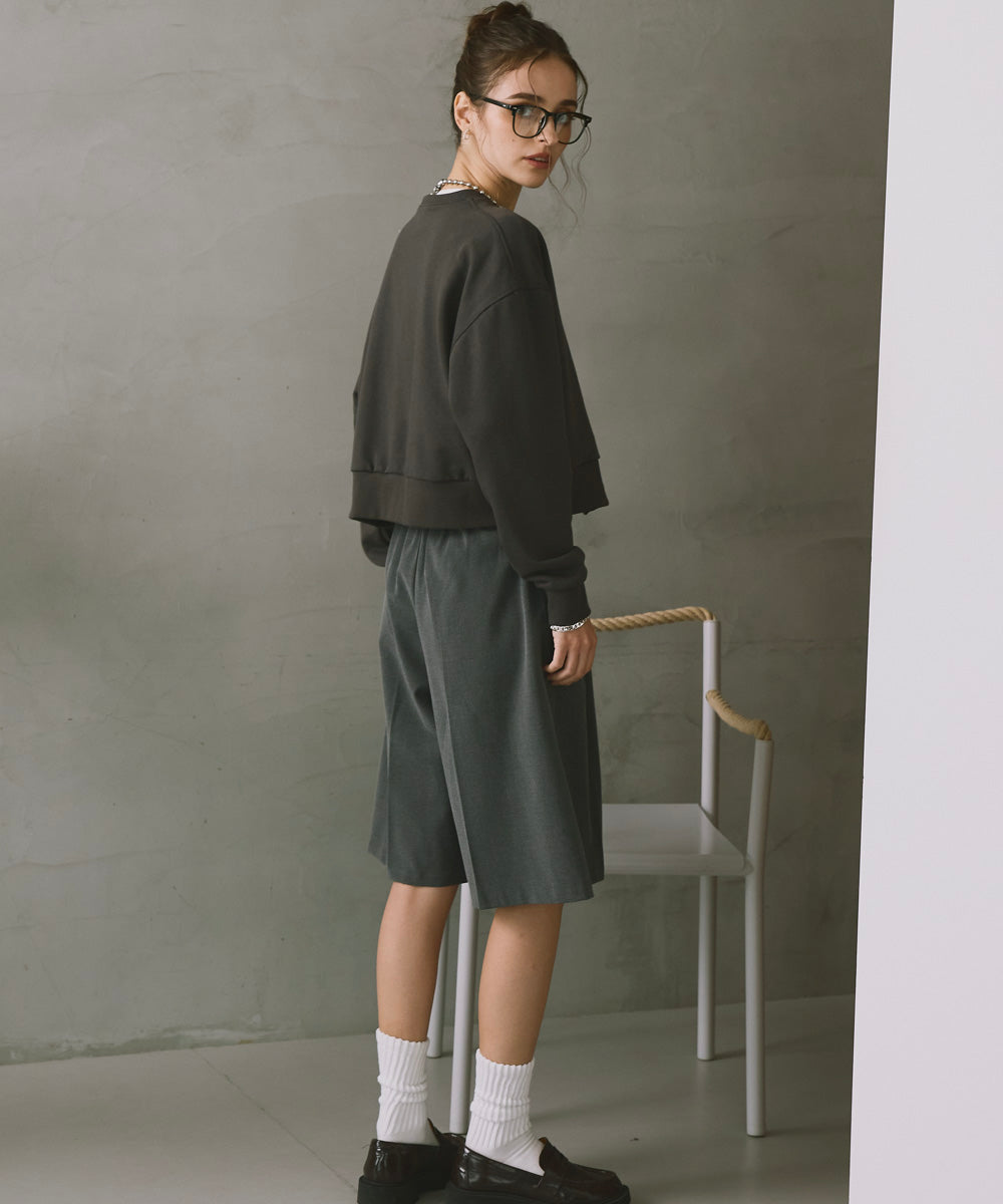 腰まわりをすっきり見せる短め丈で、スタイルアップ効果もあるのが大人女子にうれしい。