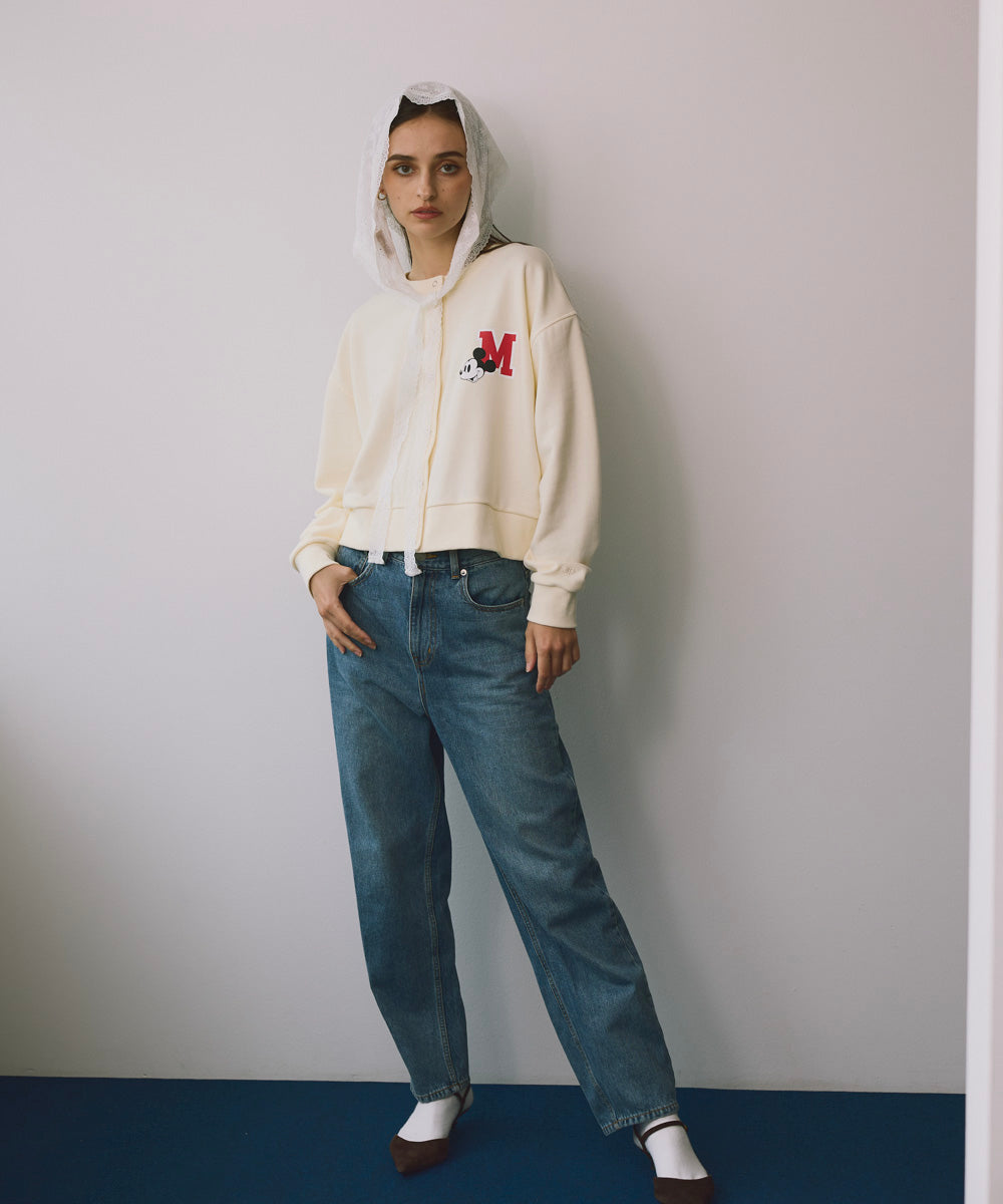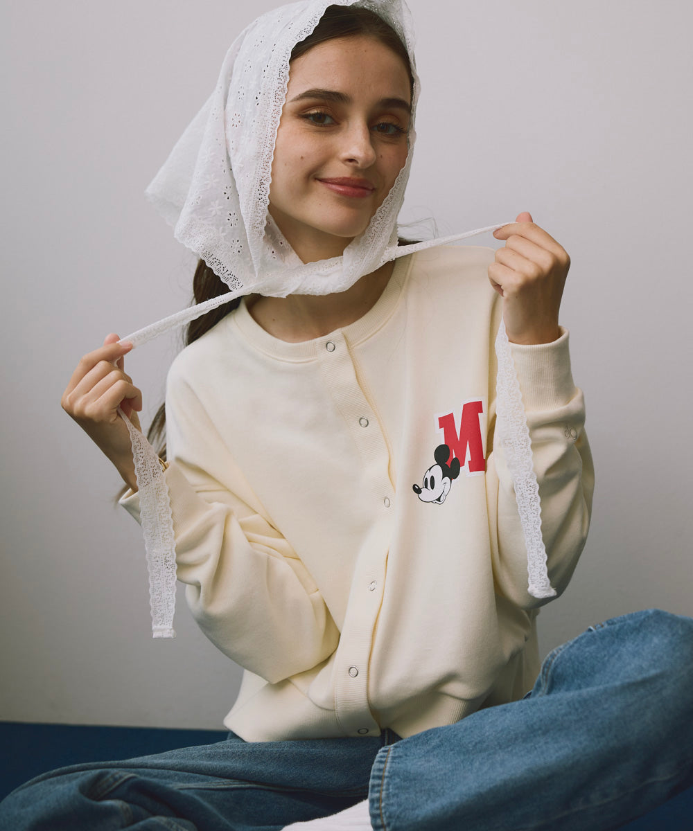 胸もとにはちょこんとミッキーのフェイスプリント+大きなアルファベット「M」がアクセントに♪