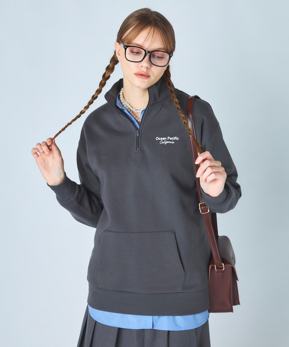 胸元のブランドロゴと、 背中に大胆に施されたメッセージが目を引くスウェットです!カジュアルストリートなイメージで、ハーフジッ プ仕様なので、気温やスタイリングに合わせて襟元の表情を変えられるのが魅力♪