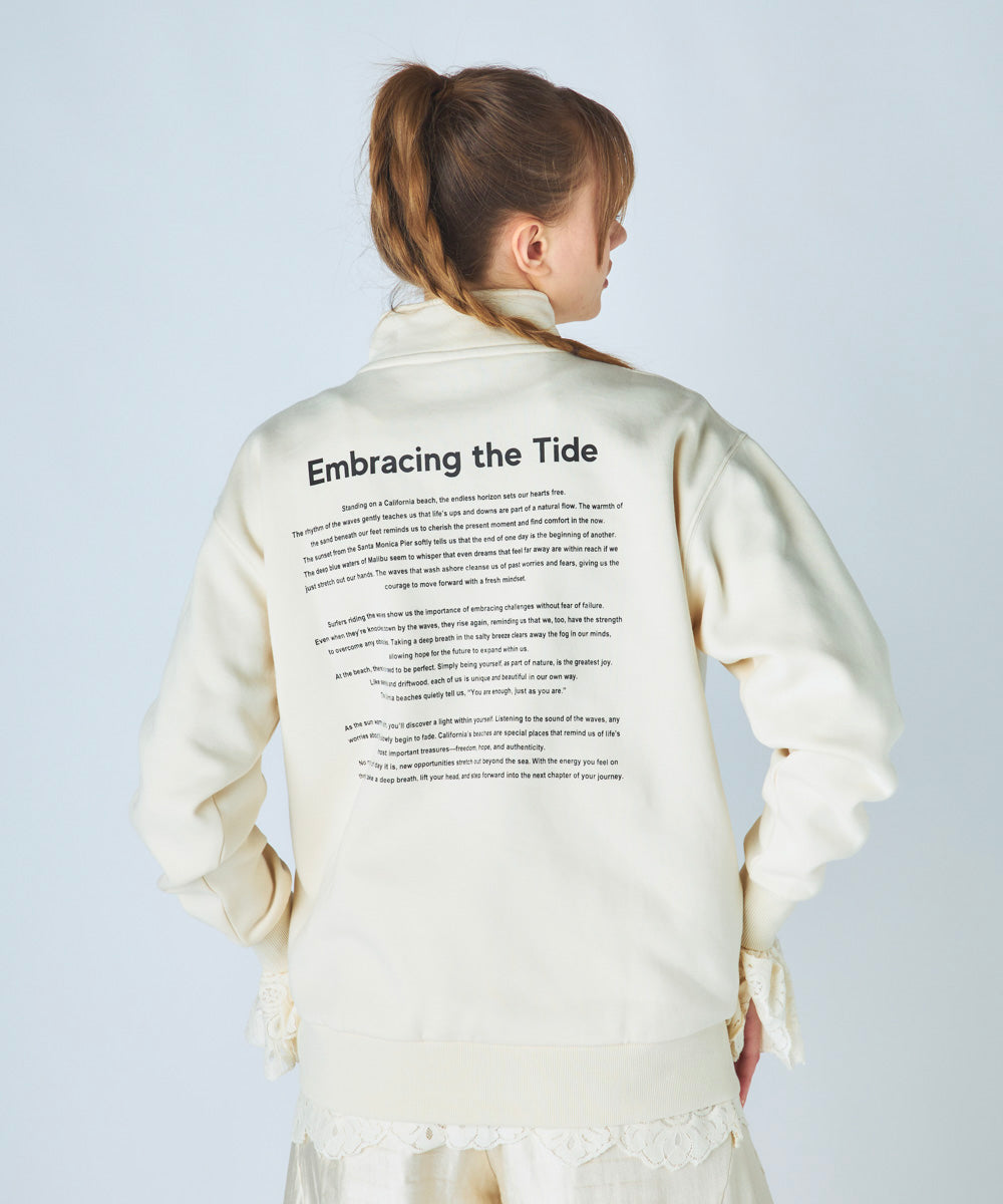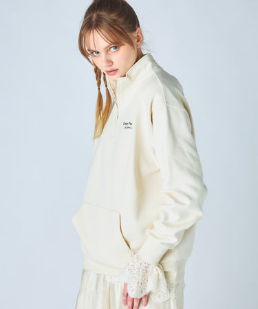 胸元のブランドロゴと、 背中に大胆に施されたメッセージが目を引くスウェットです!カジュアルストリートなイメージで、ハーフジッ プ仕様なので、気温やスタイリングに合わせて襟元の表情を変えられるのが魅力♪