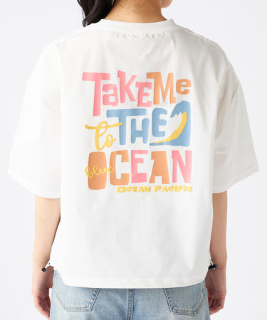 フロントはさりげないブランドロゴに、バックプリントがカラフルに大胆にはいった夏らしい水陸両用のTシャツです。