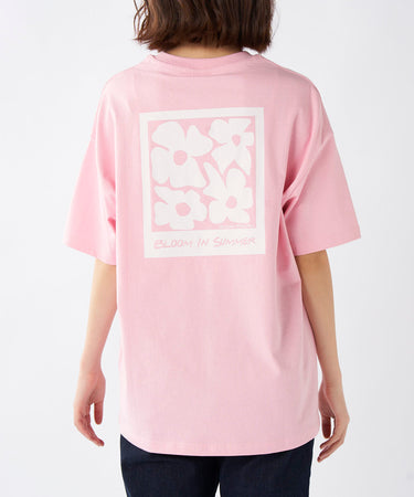 フラワープリントが色と形にこだわったTシャツです。フロントはワンポイントでシンプルに、バックはボックスフラワー柄で後ろ姿もおしゃれに!