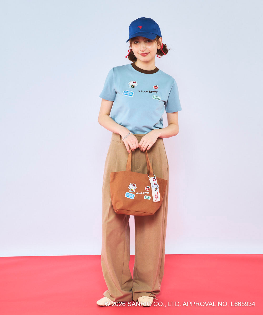 ハローキティのワッペンやロゴをあしらった、ポップで遊び心のあるミニトートバッグ♪